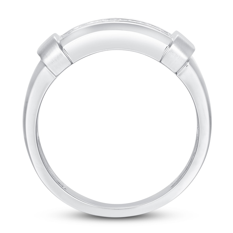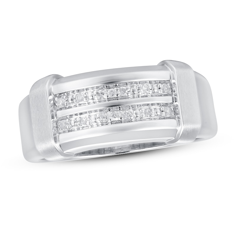 This stunning men's wedding band features two rows of beautiful round-cut diamonds at the center, for a total diamond weight of 1/15 carat. The band is crafted in 10K white gold with a satin finish. From the Now & Forever® collection.