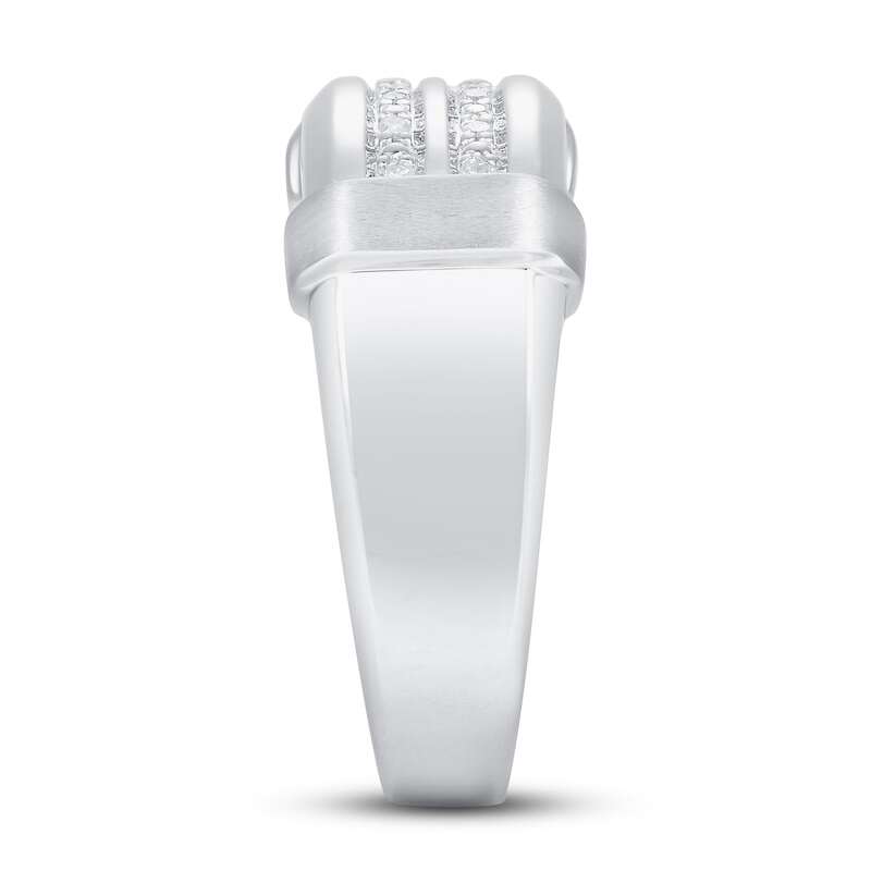 This stunning men's wedding band features two rows of beautiful round-cut diamonds at the center, for a total diamond weight of 1/15 carat. The band is crafted in 10K white gold with a satin finish. From the Now & Forever® collection.