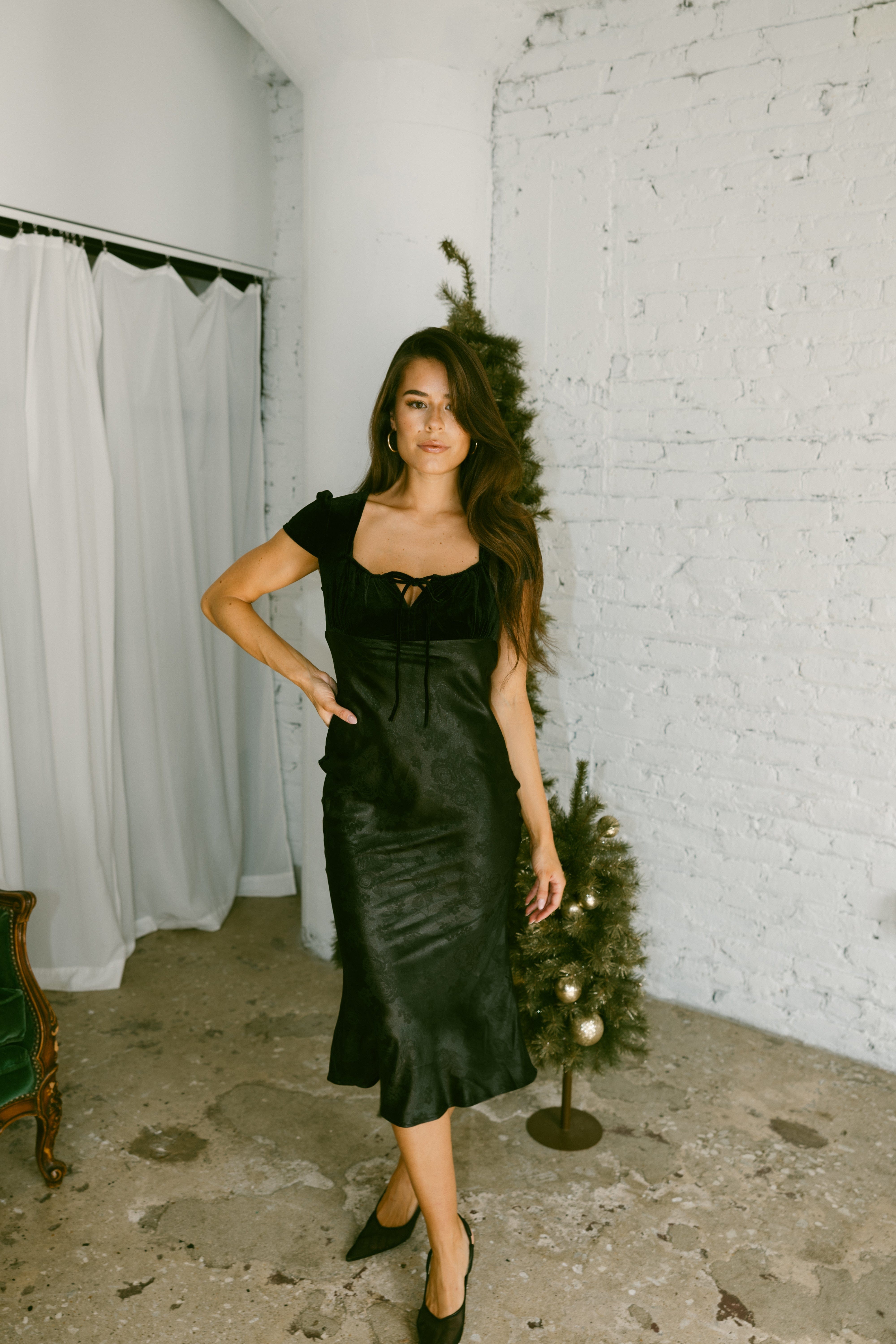 This stylish Miranda Midi Dress features a side zipper and a chest tie detail, making it easy to put on and flattering to wear. The midi length and floral print add a touch of elegance to any occasion. Perfect for those seeking a feminine and fashionable look.