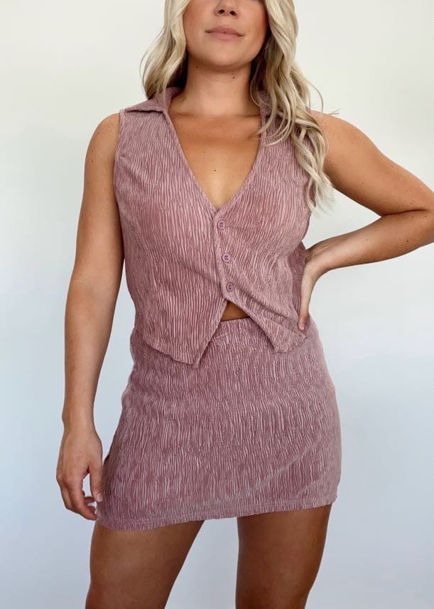 The Miss Punctuality Skirt is an elevated piece of fashion that offers a unique and stylish look. With its luxurious velvet fabric, featuring a textured design and stretchy fit, this mini skirt is sure to make a statement wherever you go. Its trendiness and softness are a perfect combination of comfort and chic.
