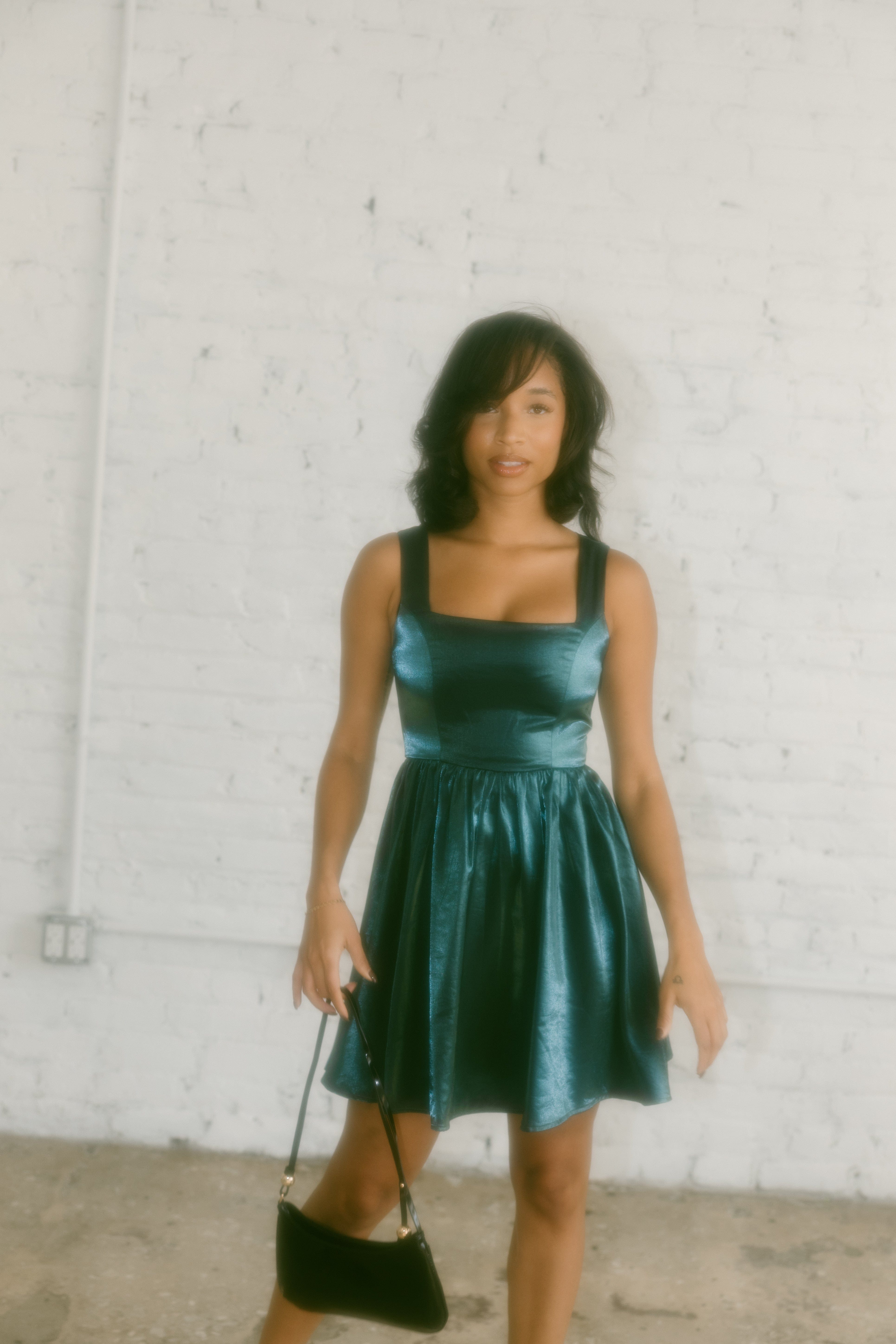 Experience effortless holiday style with our Mistletoe Twirl Dress. This mini dress features a convenient zipper in the rear for easy wear and a flattering silhouette. Perfect for any occasion, this dress will have you twirling through the festivities with joy.