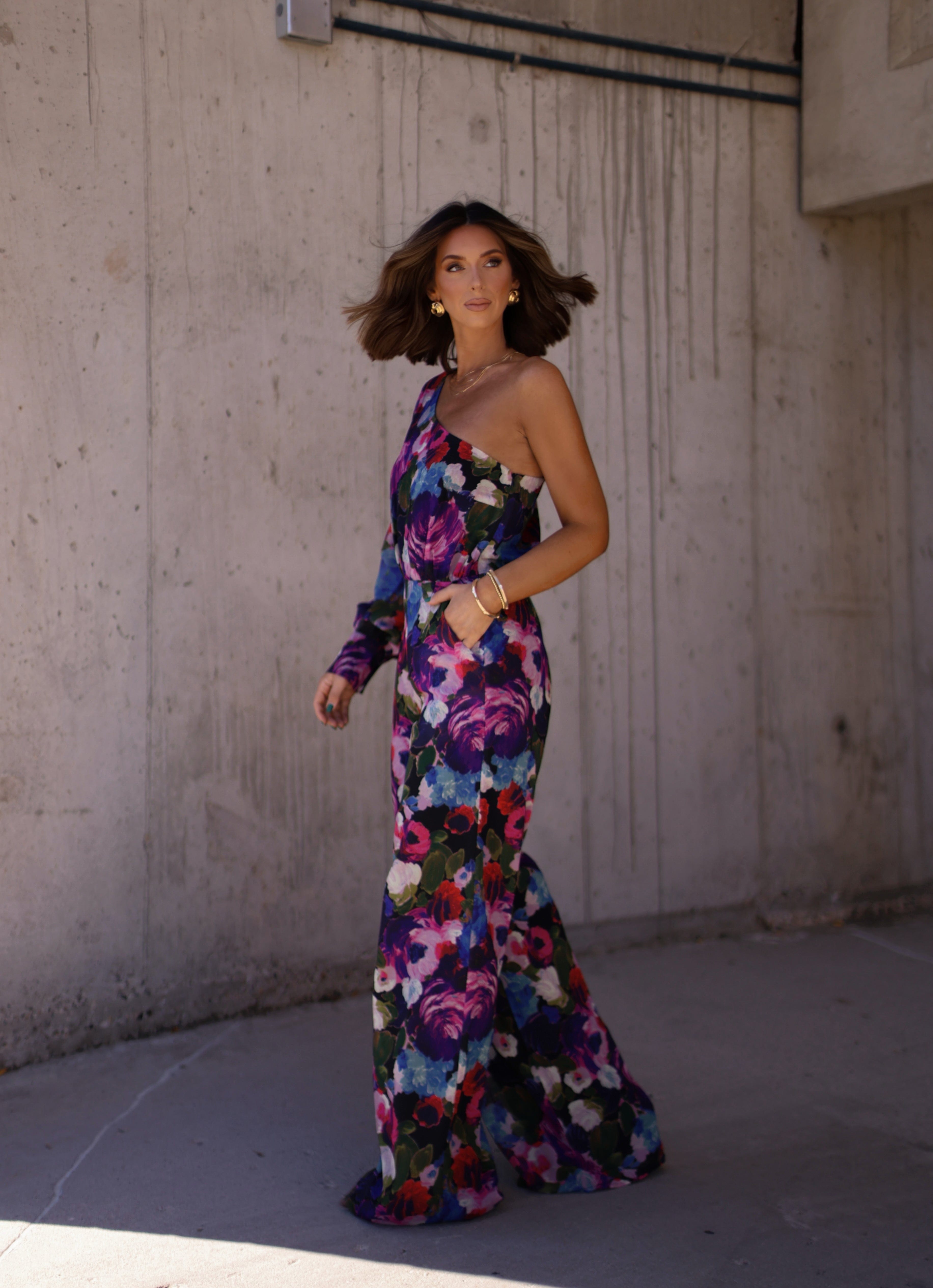 Effortlessly elevate your style with our Moonlit Meadow Jumpsuit. Featuring a chic floral pattern and a convenient side zipper, this jumpsuit offers both fashion and function. Embrace a sophisticated look with ease and stand out from the crowd in this one shoulder design.