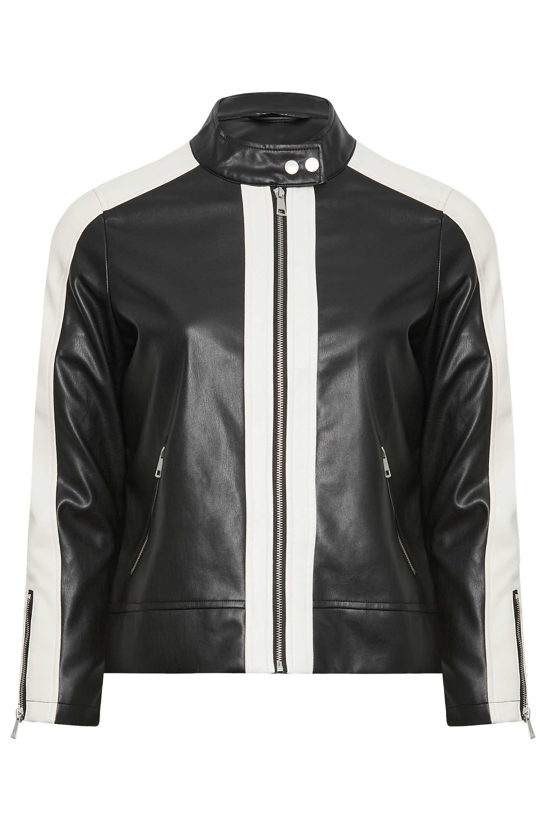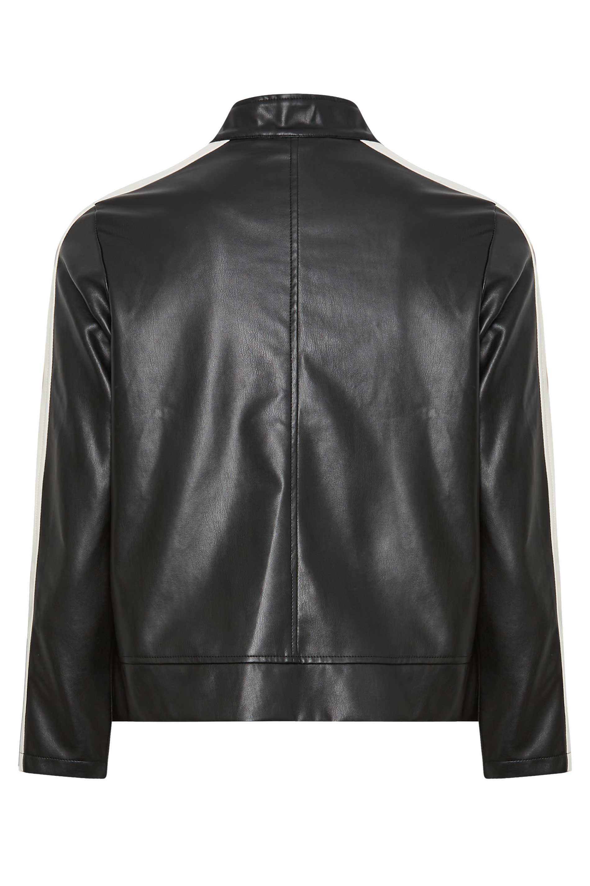 Amp up your outerwear collection with this new-in biker jacket. Made from a faux leather fabric, it features a contrast stripe design with long sleeves and zip pockets. Simply layer over jeans and a t-shirt for an on-trend look that you can wear with confidence.