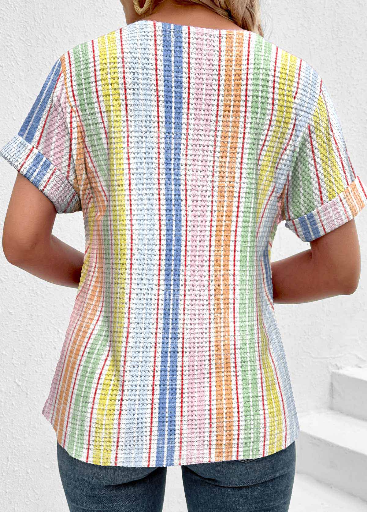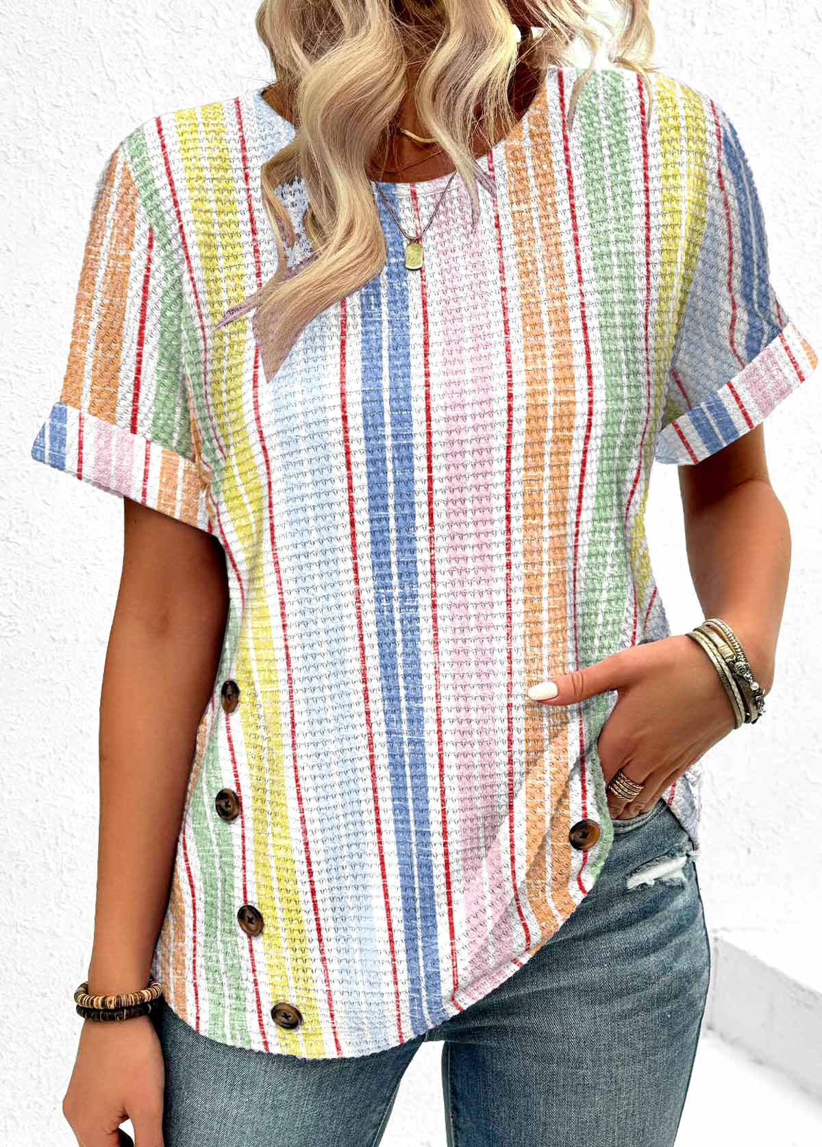 Multi Color Button Striped Short Sleeve T Shirt 168629