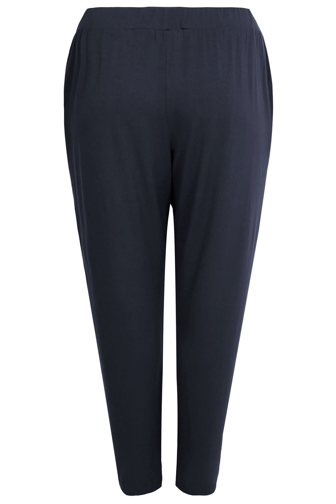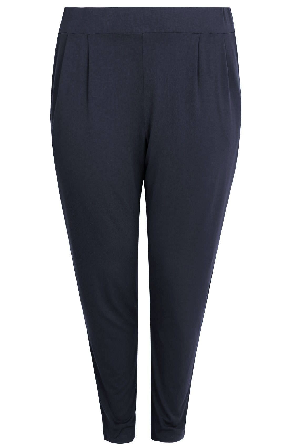 YOURS Curve Navy Blue Double Pleat Stretch Jersey Joggers 250979