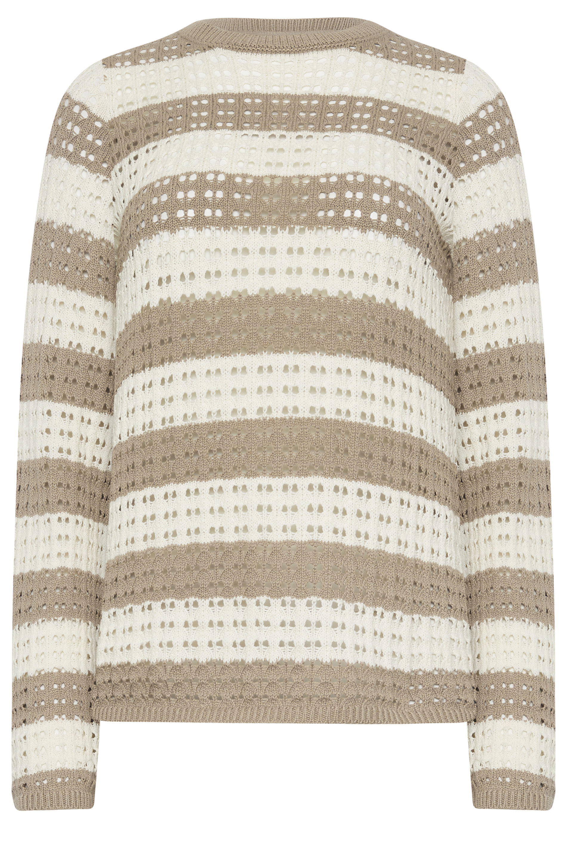 Upgrade your new season style with this crochet knit jumper. Made from a soft knitted fabric, it features a crochet design, stripe pattern, scoop neckline and long sleeves. Layer over a vest top and jeans for a stylish look, perfect for the season ahead.
