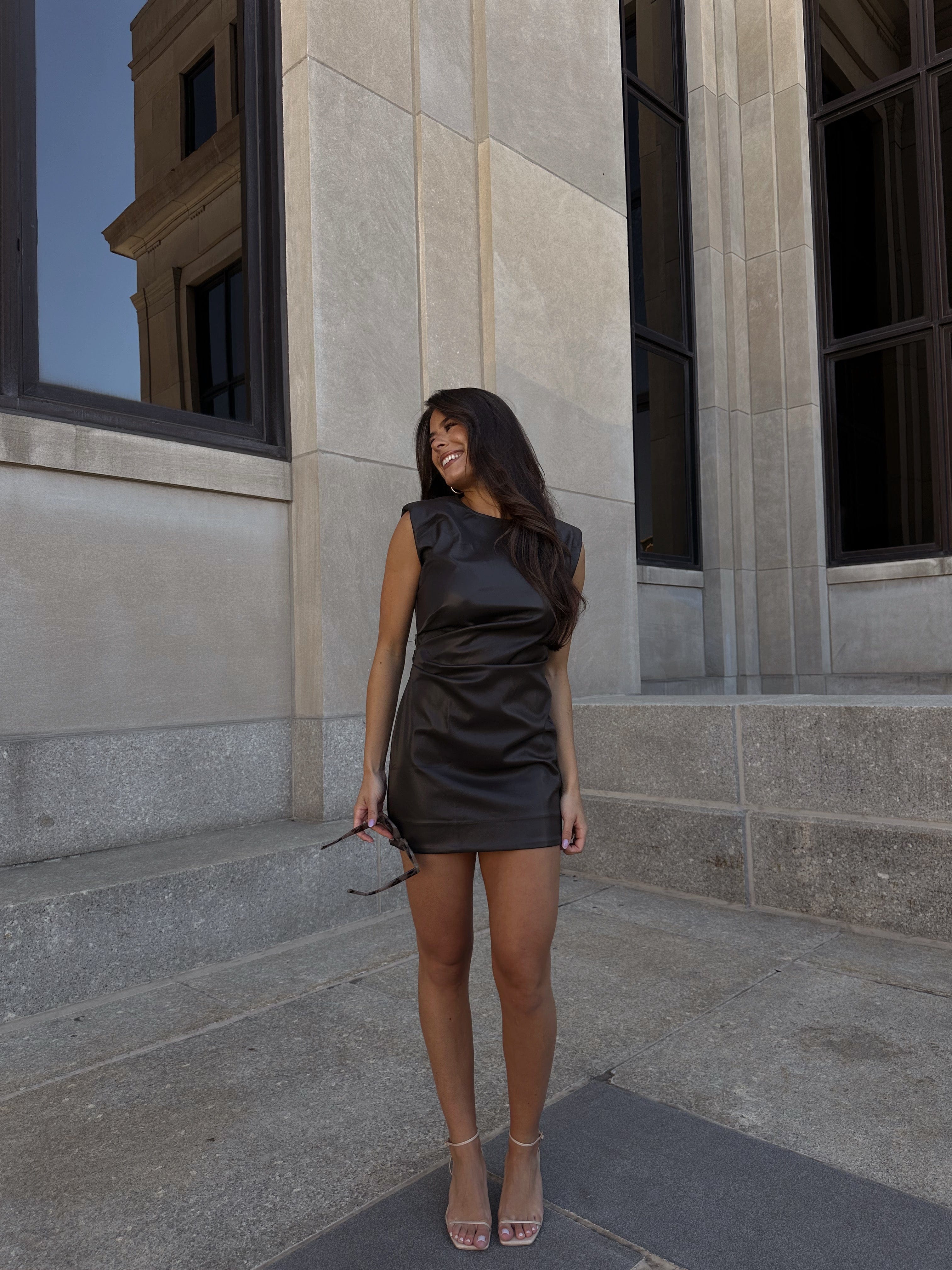 Elevate your style with the New York Moment Dress. Featuring shoulder pads and a zipper in the rear, this mini dress exudes sophistication and elegance. Limited stretch ensures a flattering fit. Perfect for any occasion, this dress will make you stand out in a crowd.