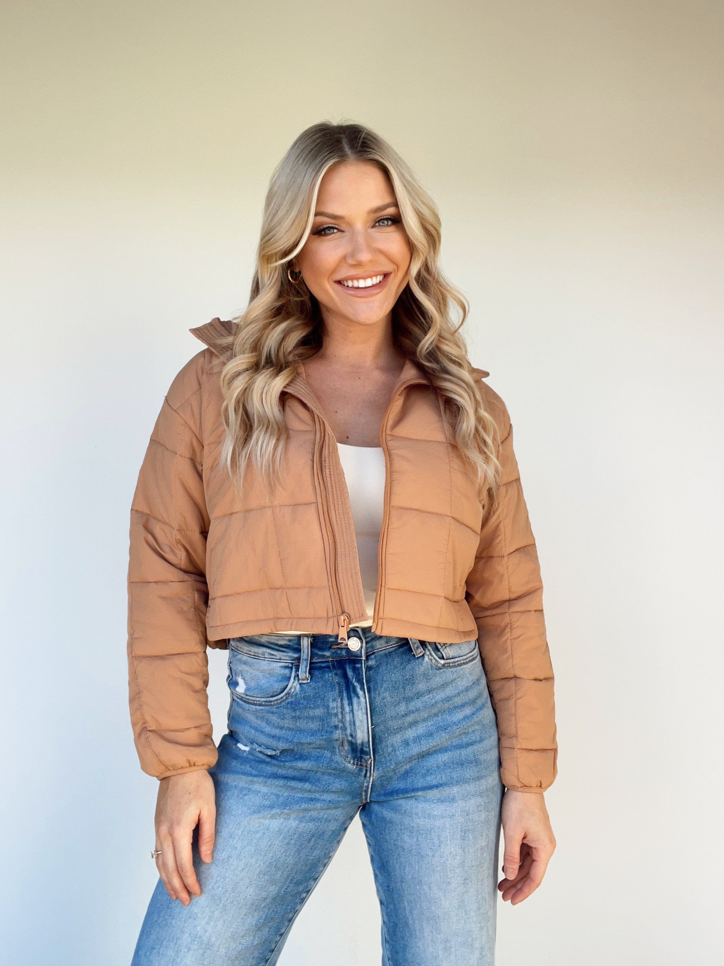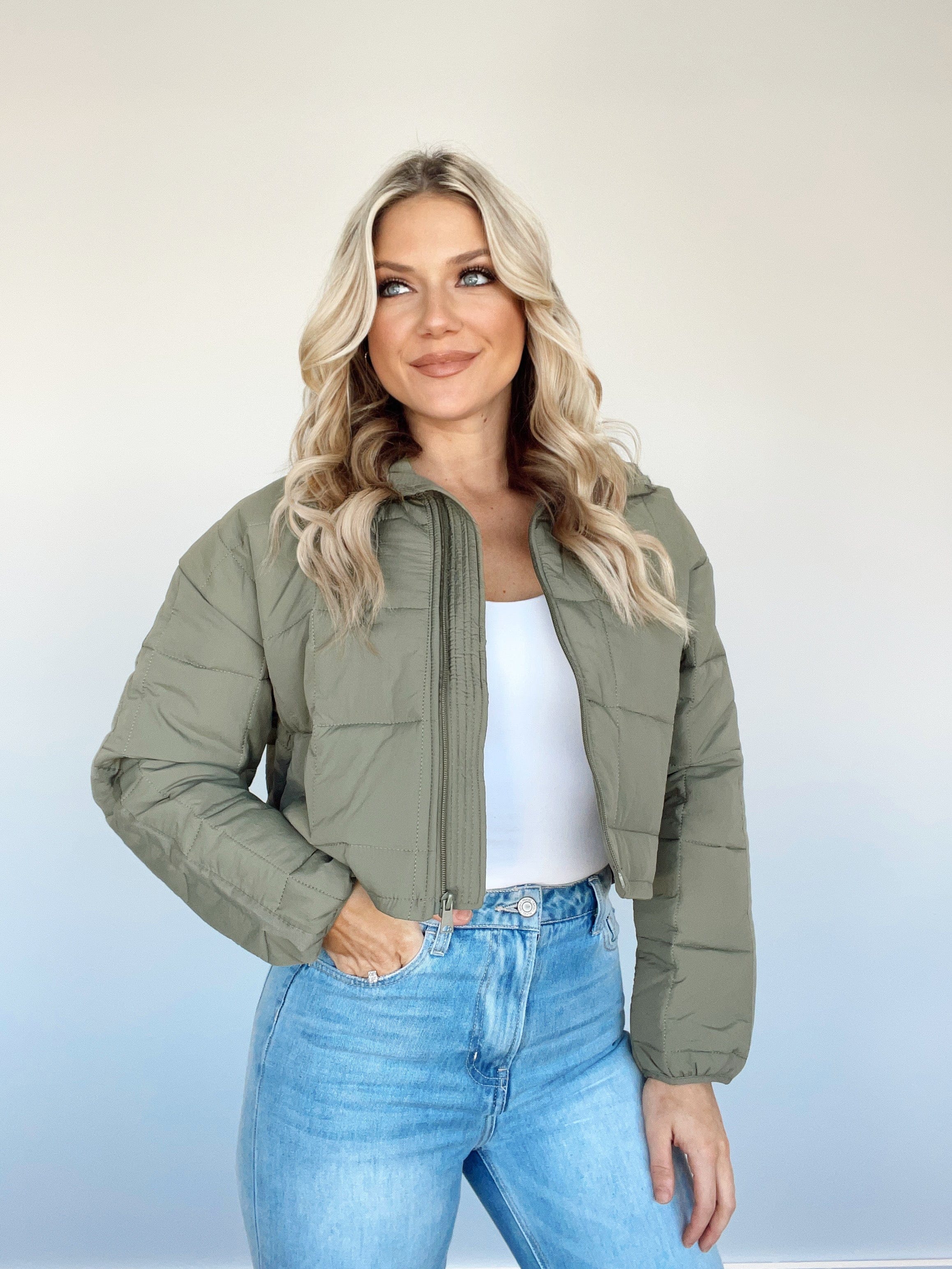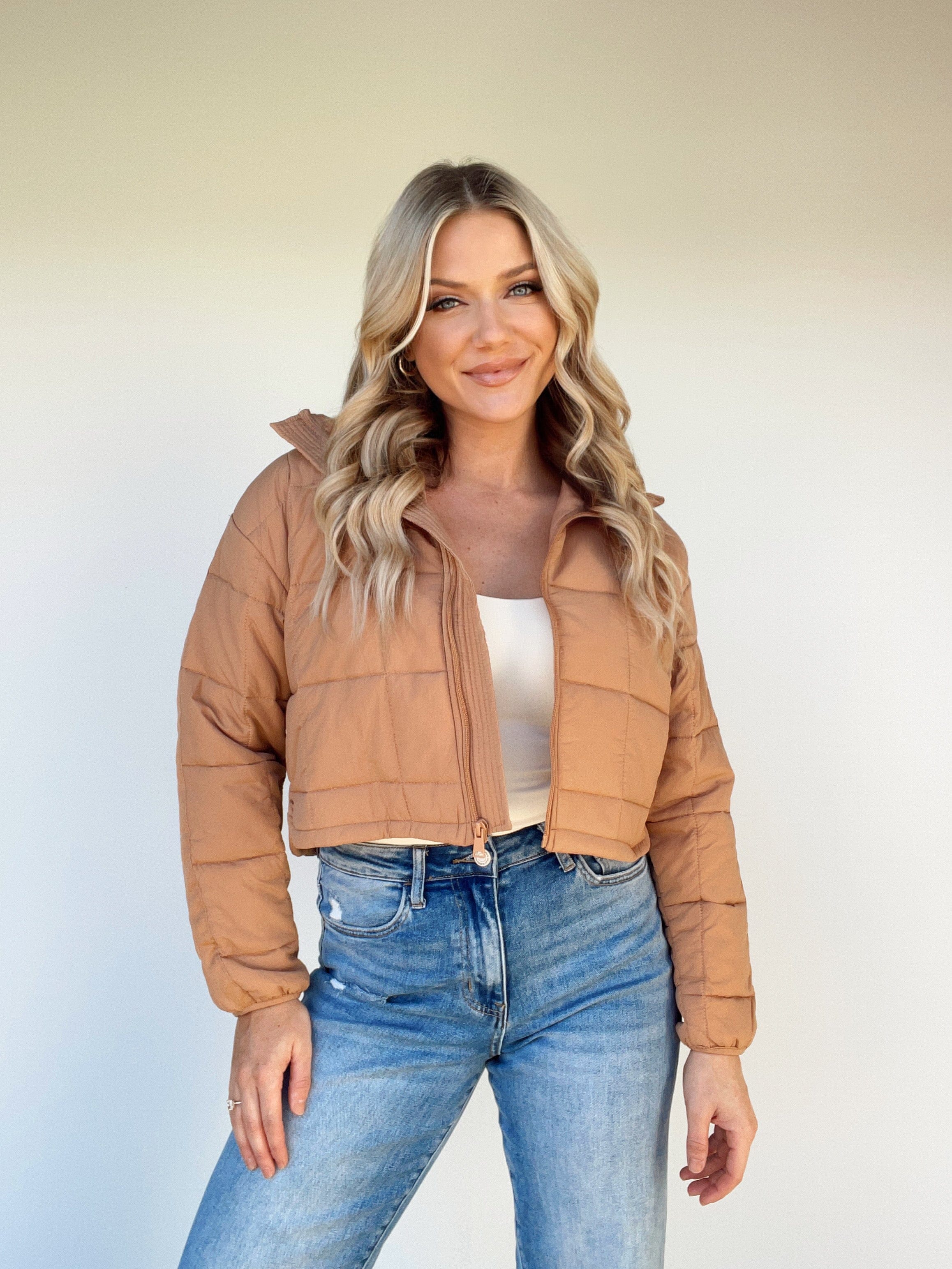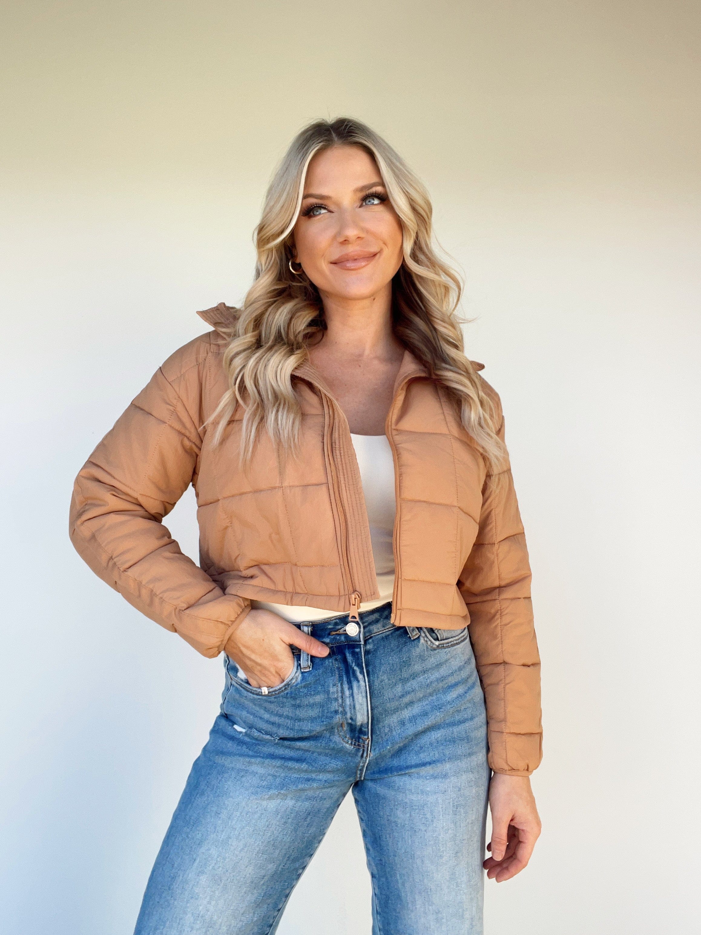 Stay stylishly warm and cozy with this luxurious Slopeside Puffer Coat. Featuring a quilted collared neckline, cropped silhouette, and zipper closure for a trend-forward look. This versatile coat is the perfect piece for brunch dates, coffee runs, and shopping in the cooler months. Crafted with soft, warm materials, you'll stay elevated and stylish for all your autumn and winter activities.
