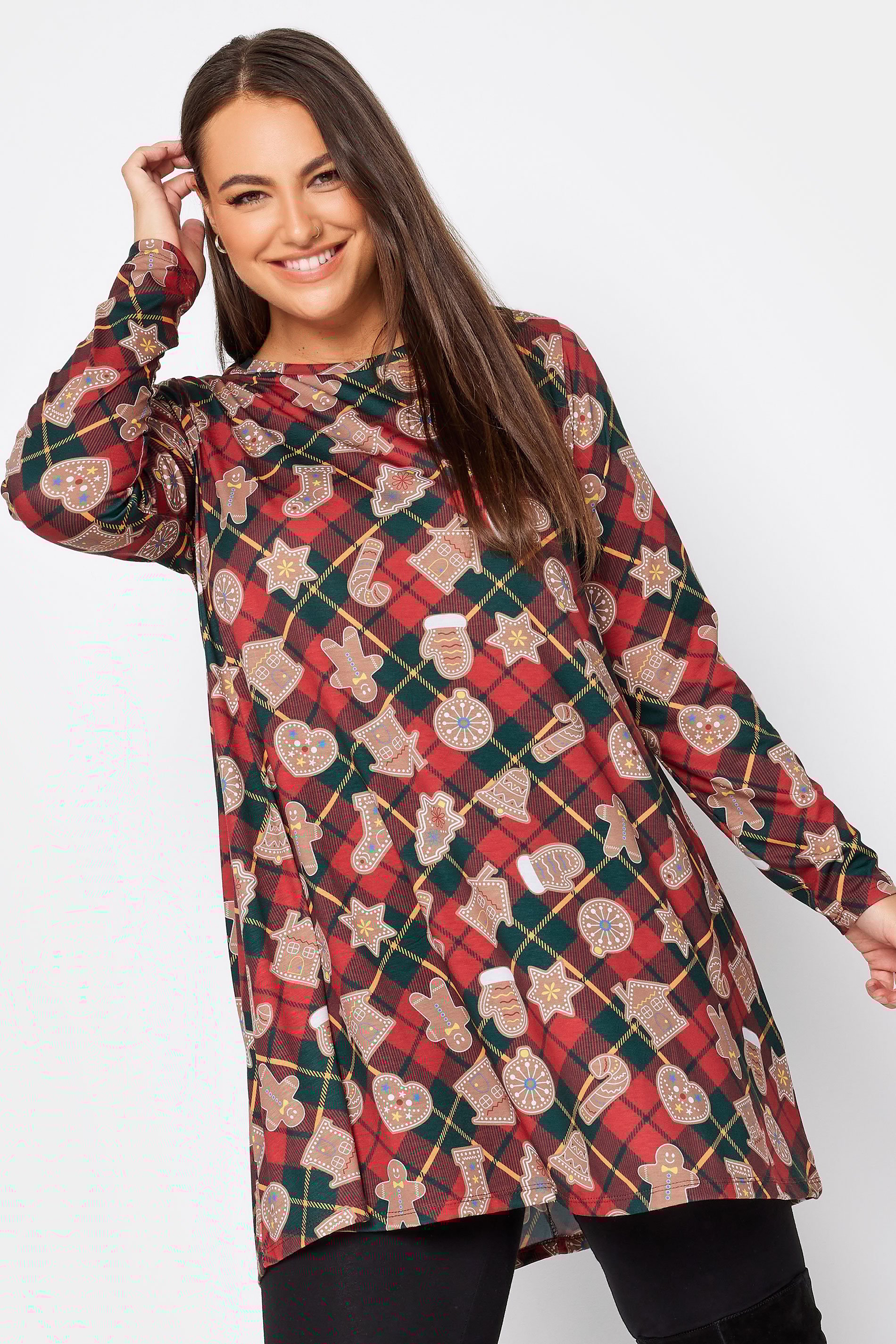 Get ready for the festive season in style with this printed tunic top. Made from a comfortable jersey fabric, it features a gingerbread check print, scoop neckline and long sleeves. Pair with jeans and trainers for a Christmas-ready casual look.