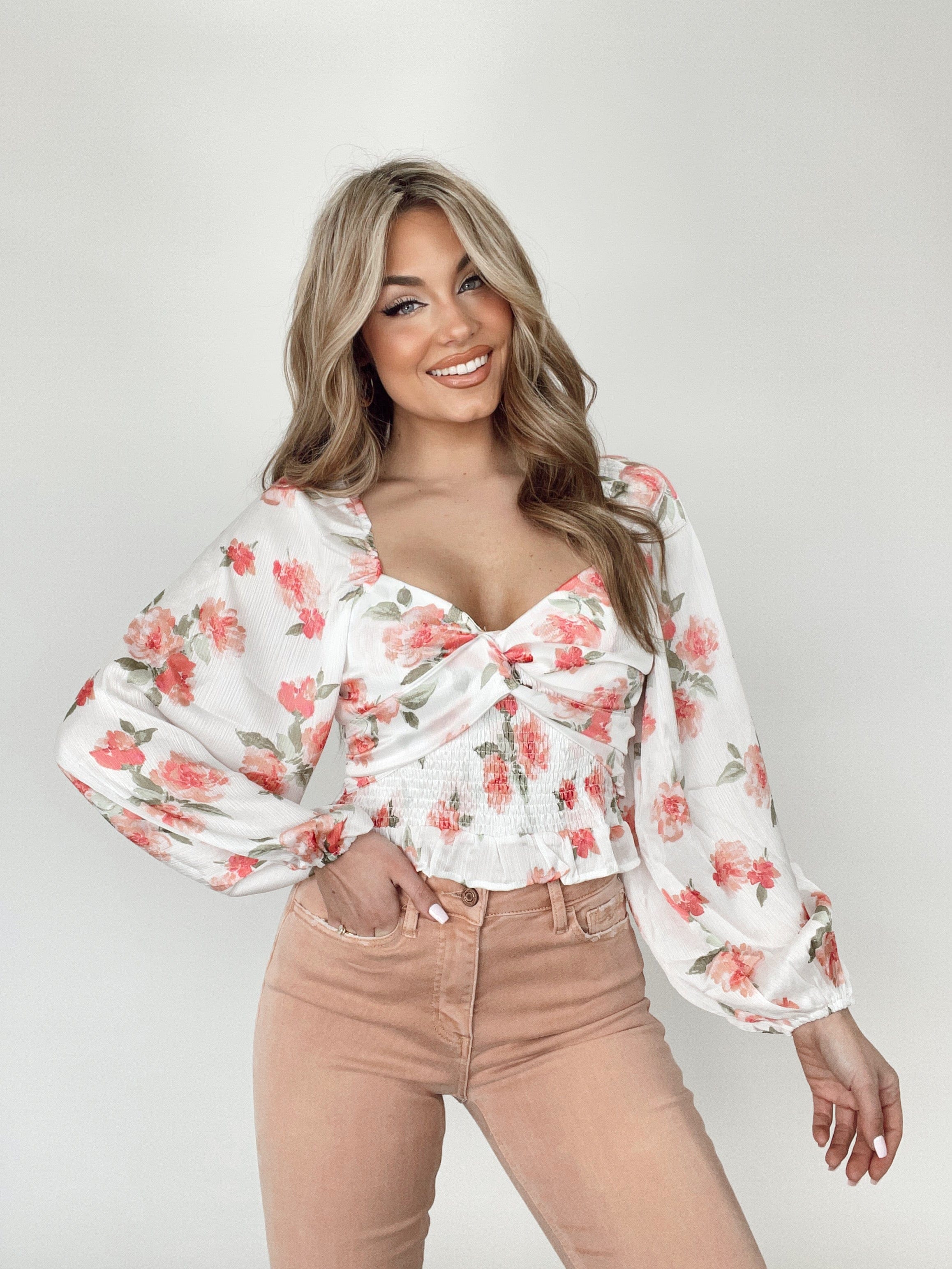 Flirty florals are trending and our Sweet Springtime Top is no exception! This sweet top features a gathered bust and cuffed bell sleeves with a back tie detailing. Pair it with your favorite denim and some strappy sandals for a sweet look.