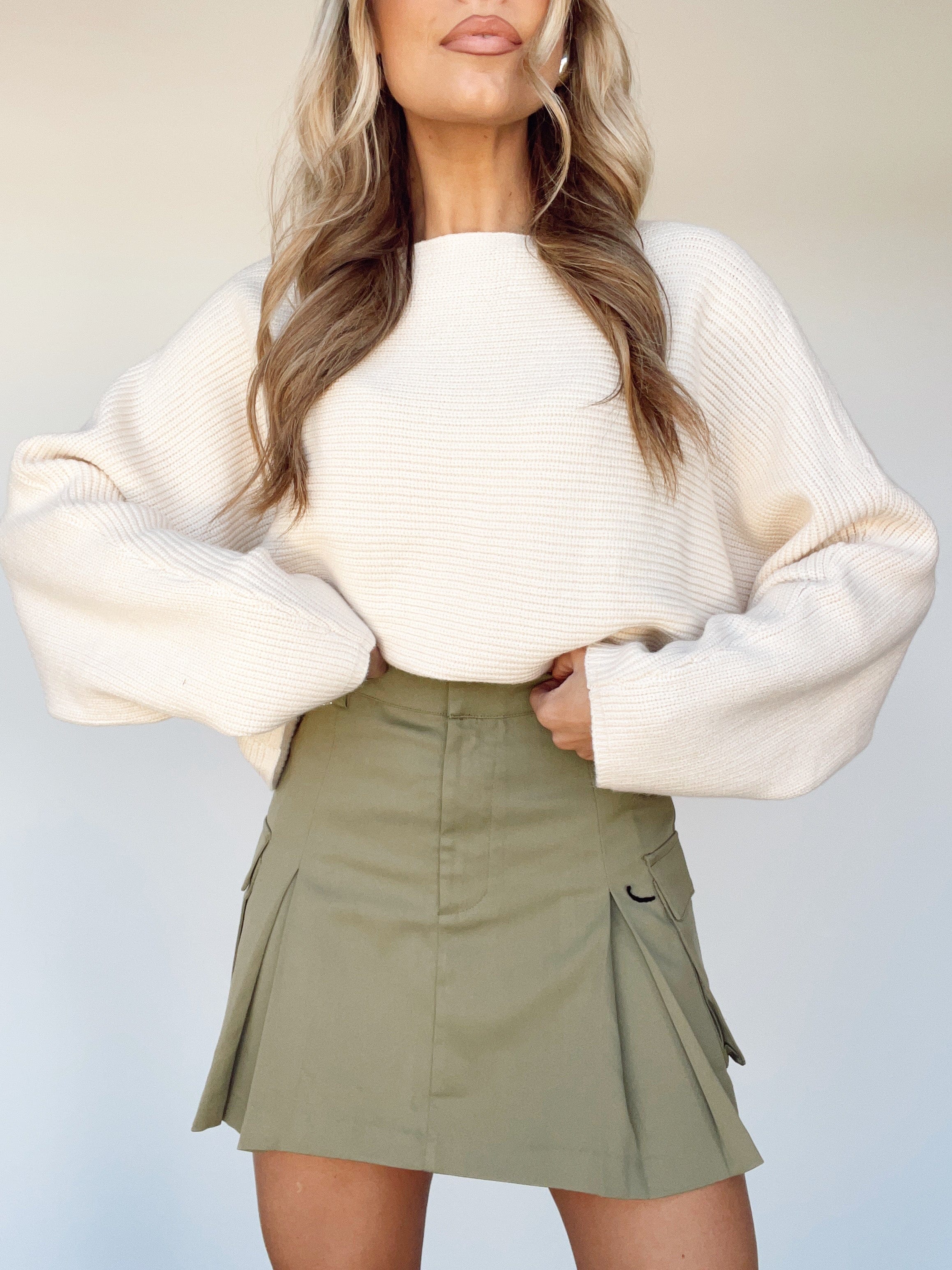 This Olive Mini Utility Skirt brings together sophisticated style and functionality. Crafted with luxurious pleats and a mini fit, it has a unique high-waisted silhouette to flatter the figure. Completed with soft and cargo pocket details, this trendy and elevated piece is perfect for any fall transition; a dinner, shopping, or brunch - all ready for a night out.