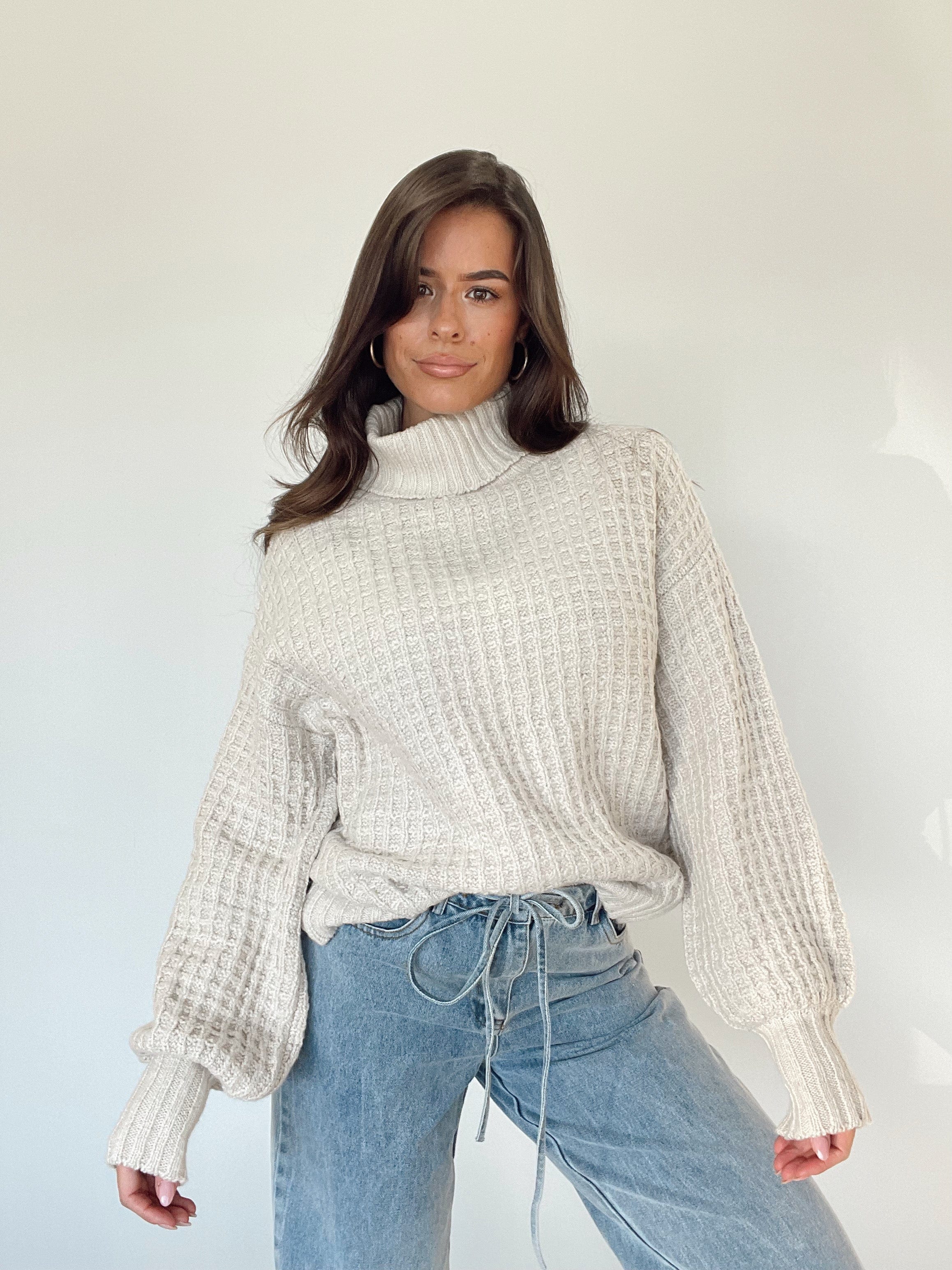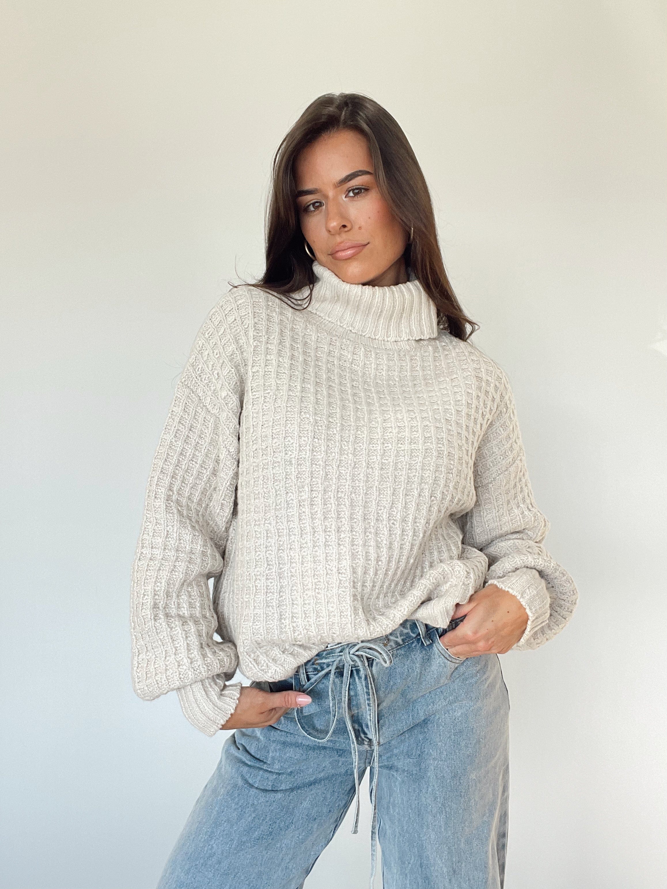 This Perfectly Knit Pullover features a cozy waffle knit design, making it perfect for cooler weather. Its turtleneck provides extra warmth, while the long sleeve and pullover style make it easy to wear. This sweater is both stylish and functional, keeping you comfortably warm all day long.