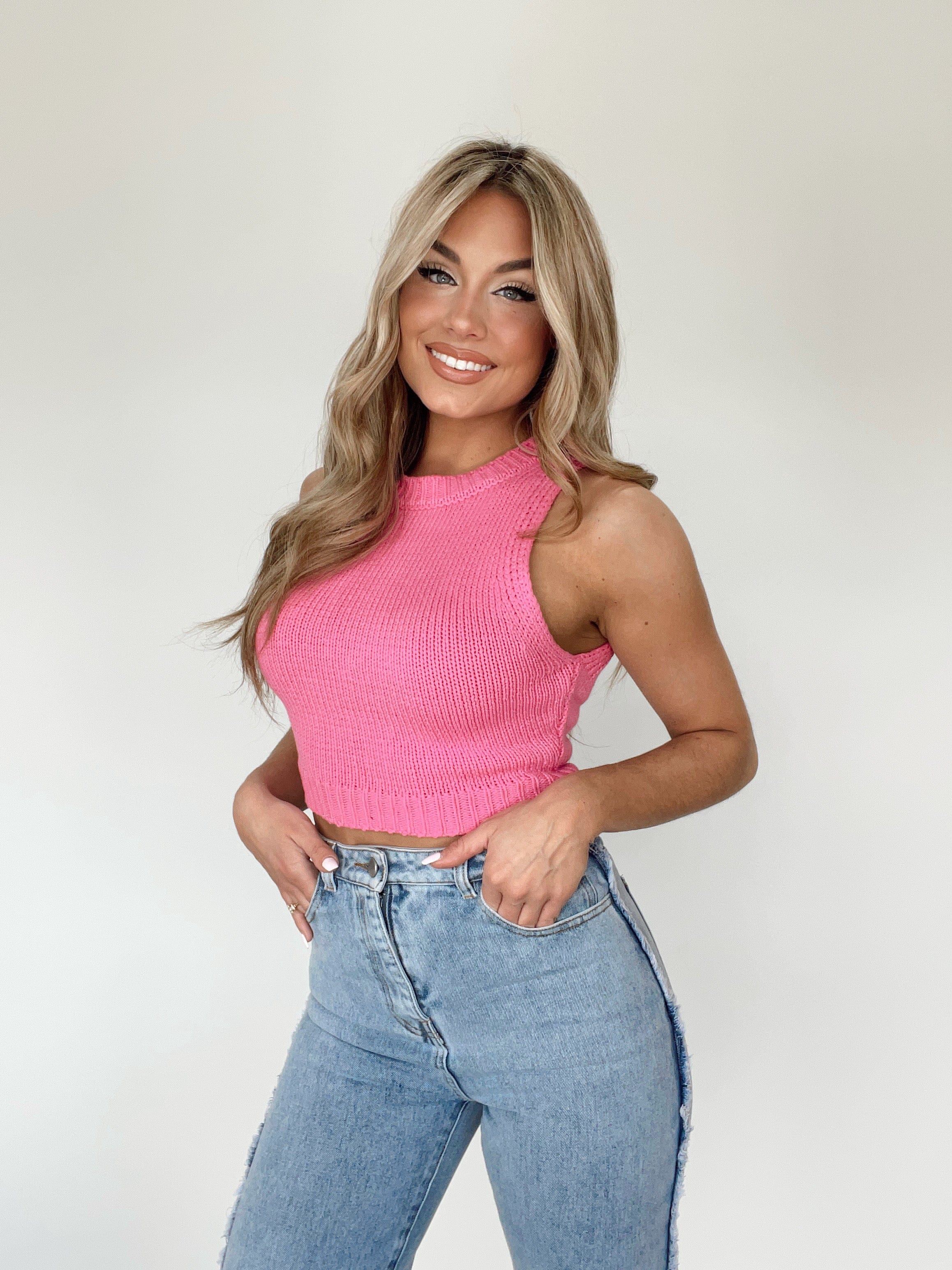 This Petal Pink Sweater Tank makes a perfect addition to your wardrobe. Boasting a cropped fit, rounded neckline, and knit fabric that is both soft and stretchy, it provides comfort and style for the vibrant days of spring and summer. With its playful yet trendy hue, this top adds a joyful pop of color to any outfit.