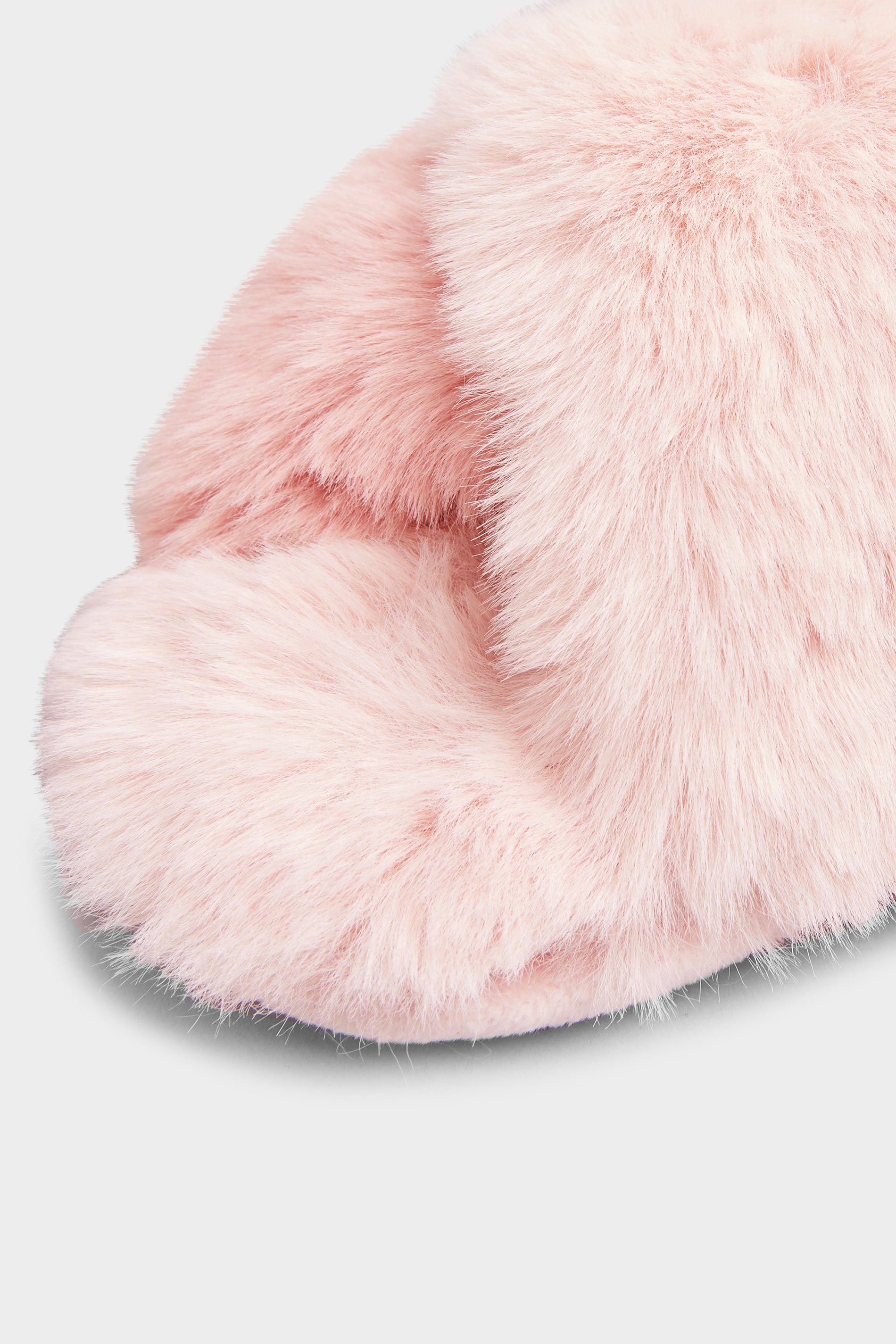 Stay cosy in these fluffy slippers. Made from a vegan fur fabric they complete with cross over straps in a slip on style.