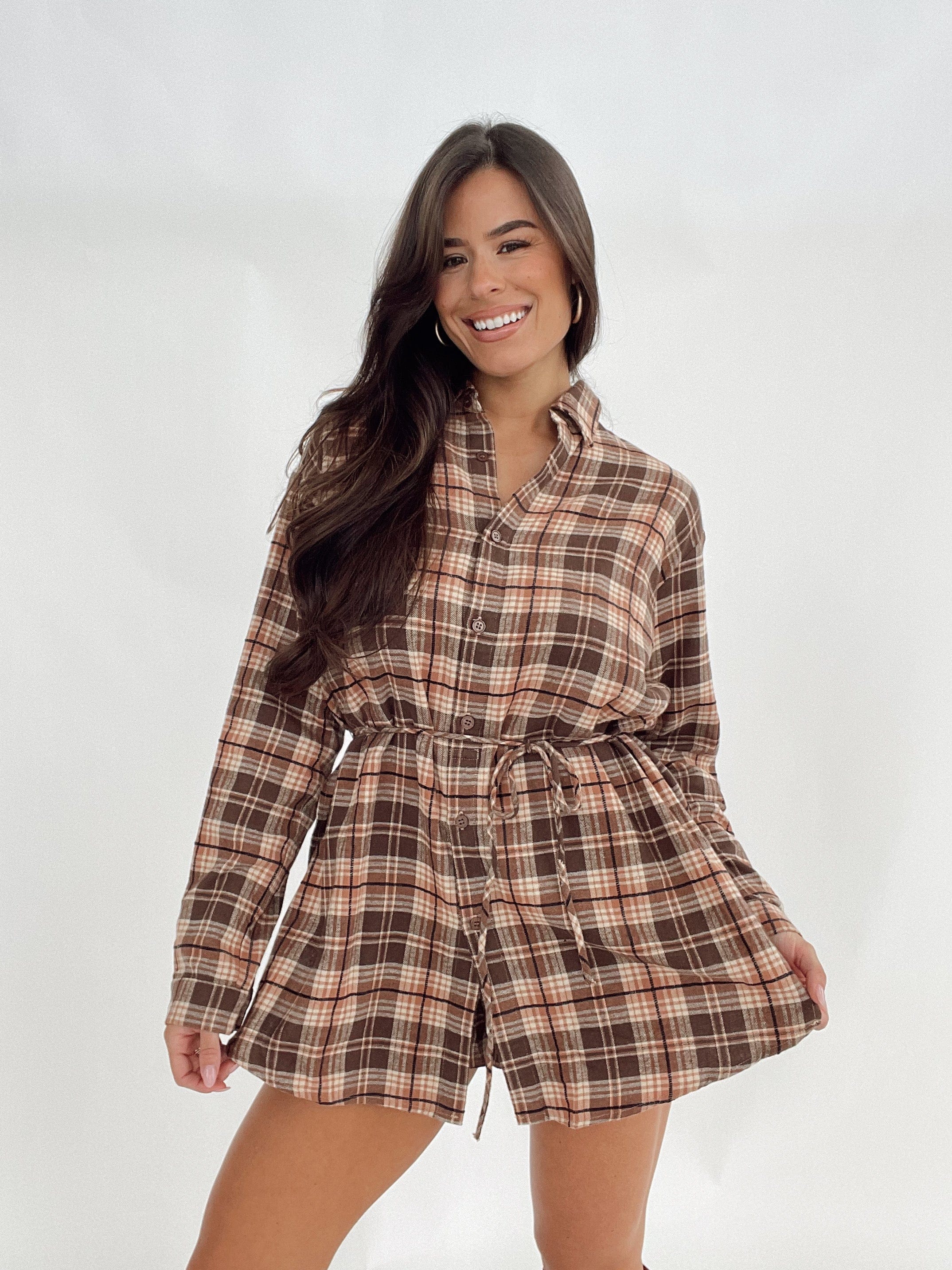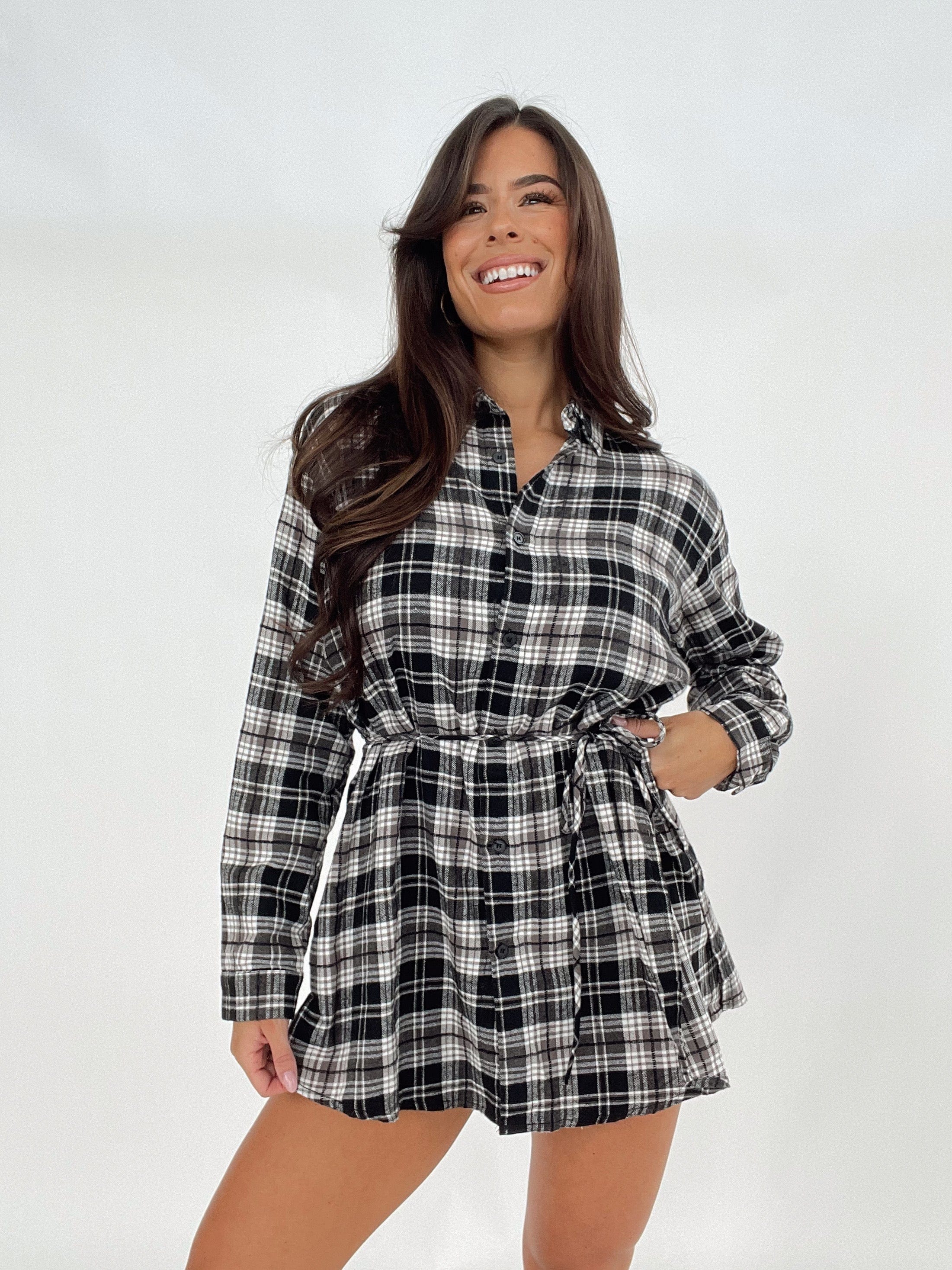This Plaid Shirt Romper offers a versatile and stylish addition to any wardrobe. The classic plaid pattern, along with the button down front, gives a timeless look. The romper design and waist tie provide a comfortable and flattering fit. With long sleeves for added coverage, it's perfect for any occasion.