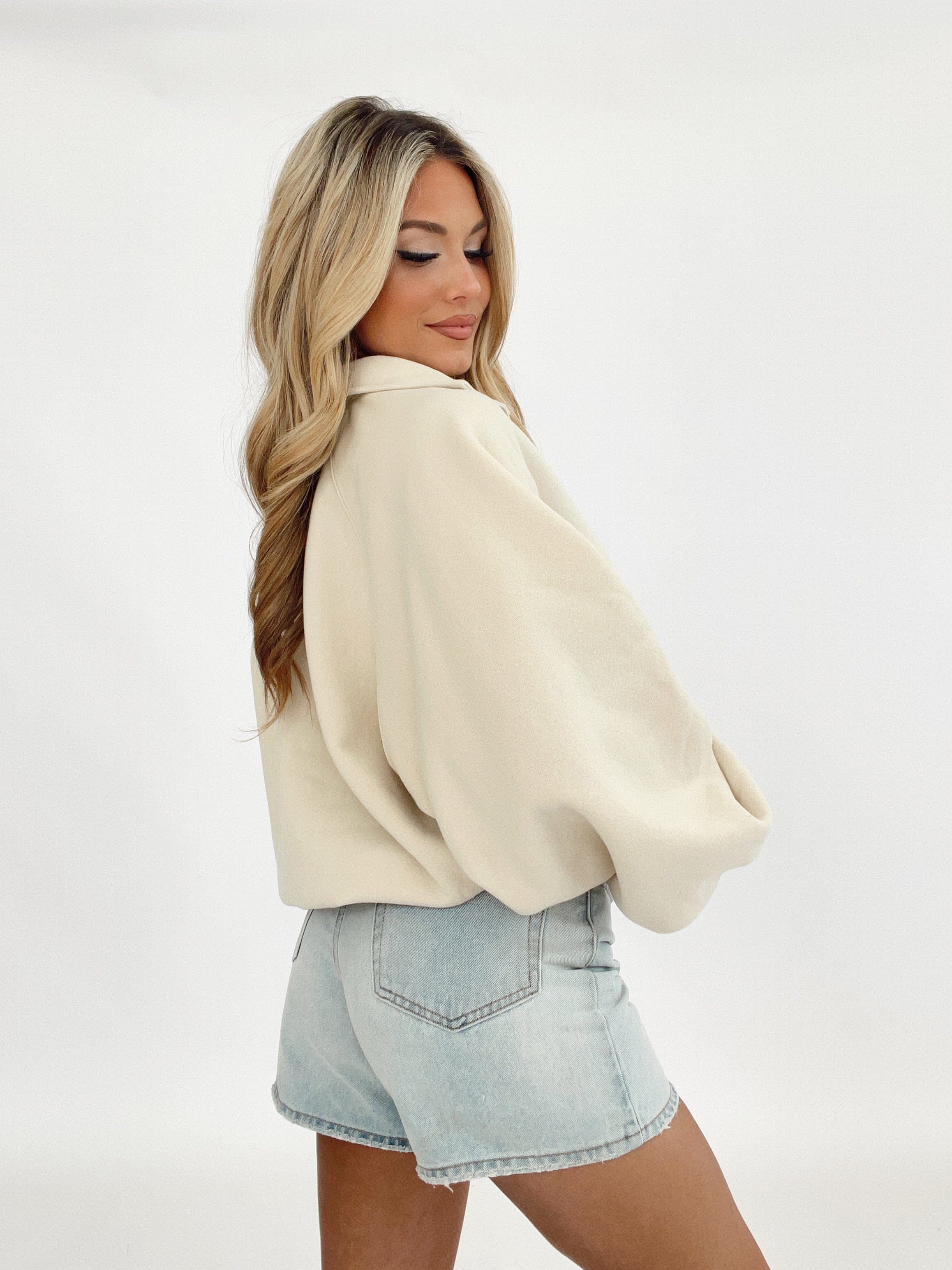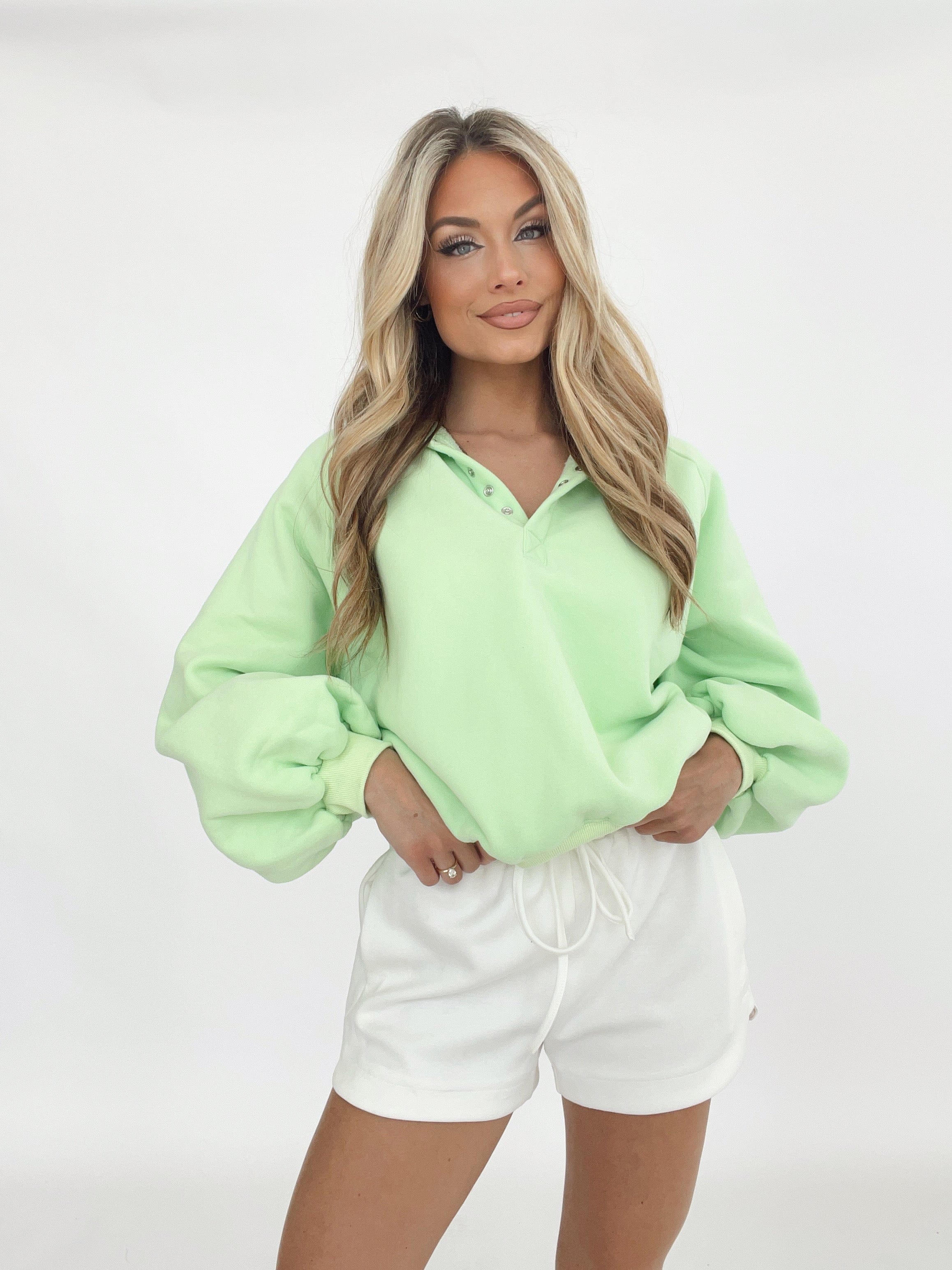 Feel fresh, light and trendy in this chill pullover. It has snap closures, a collared neckline, and balloon sleeves for the perfect relaxed fit. Soft fleece lining will keep you comfy during spring and summer days! Show off your style in this pullover - it's the ultimate in convenience and comfort!