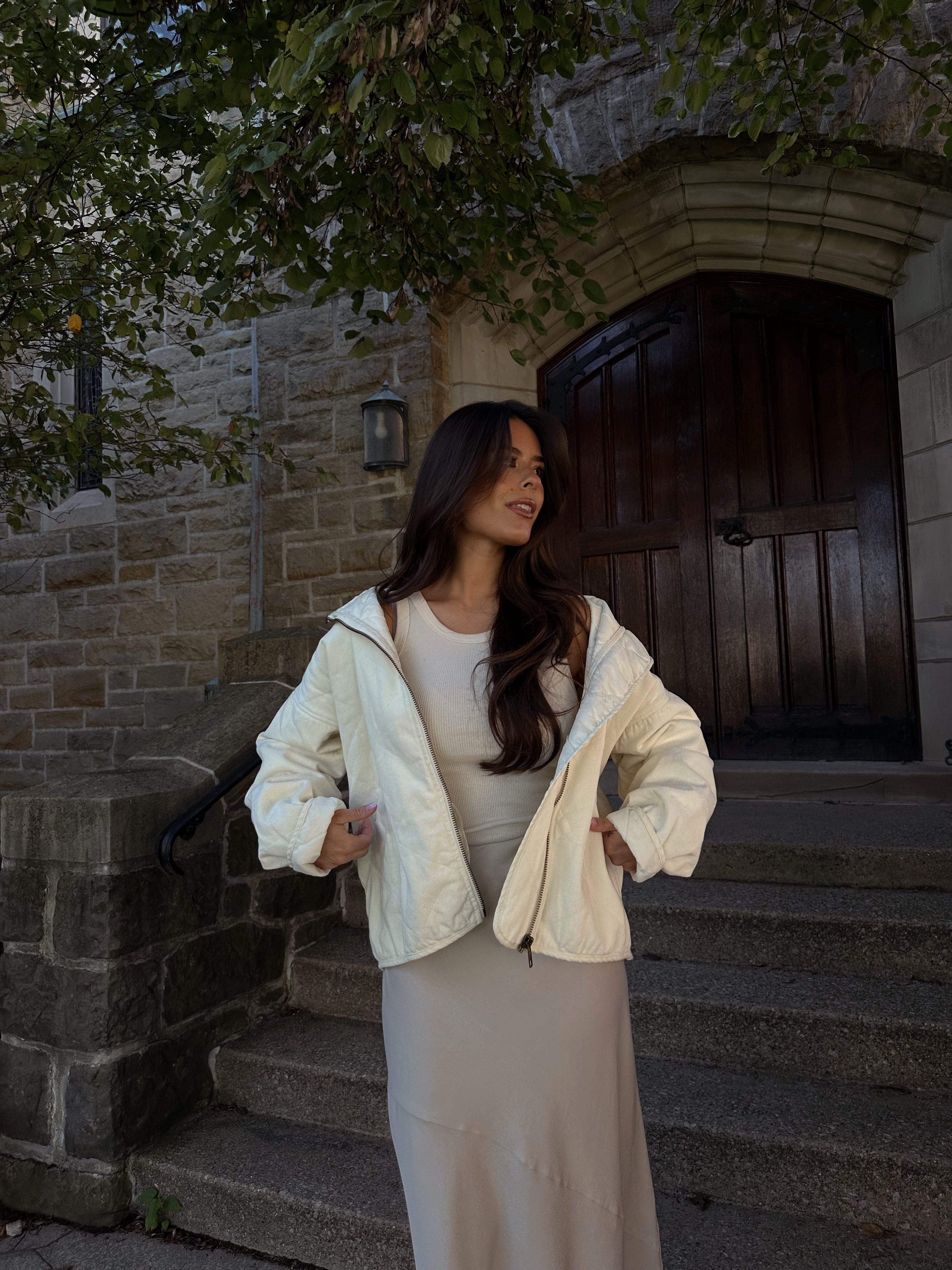 Perfect for any occasion, this quilted denim jacket offers a relaxed fit with a collared neckline and a zipper closure for an elevated, yet comfortable and cozy style. Features like the oversized pockets and trendy quilted details create a look that's perfect for both a shopping trip and a football game. With warmth and comfort in mind, this jacket is sure to become a fashion staple.