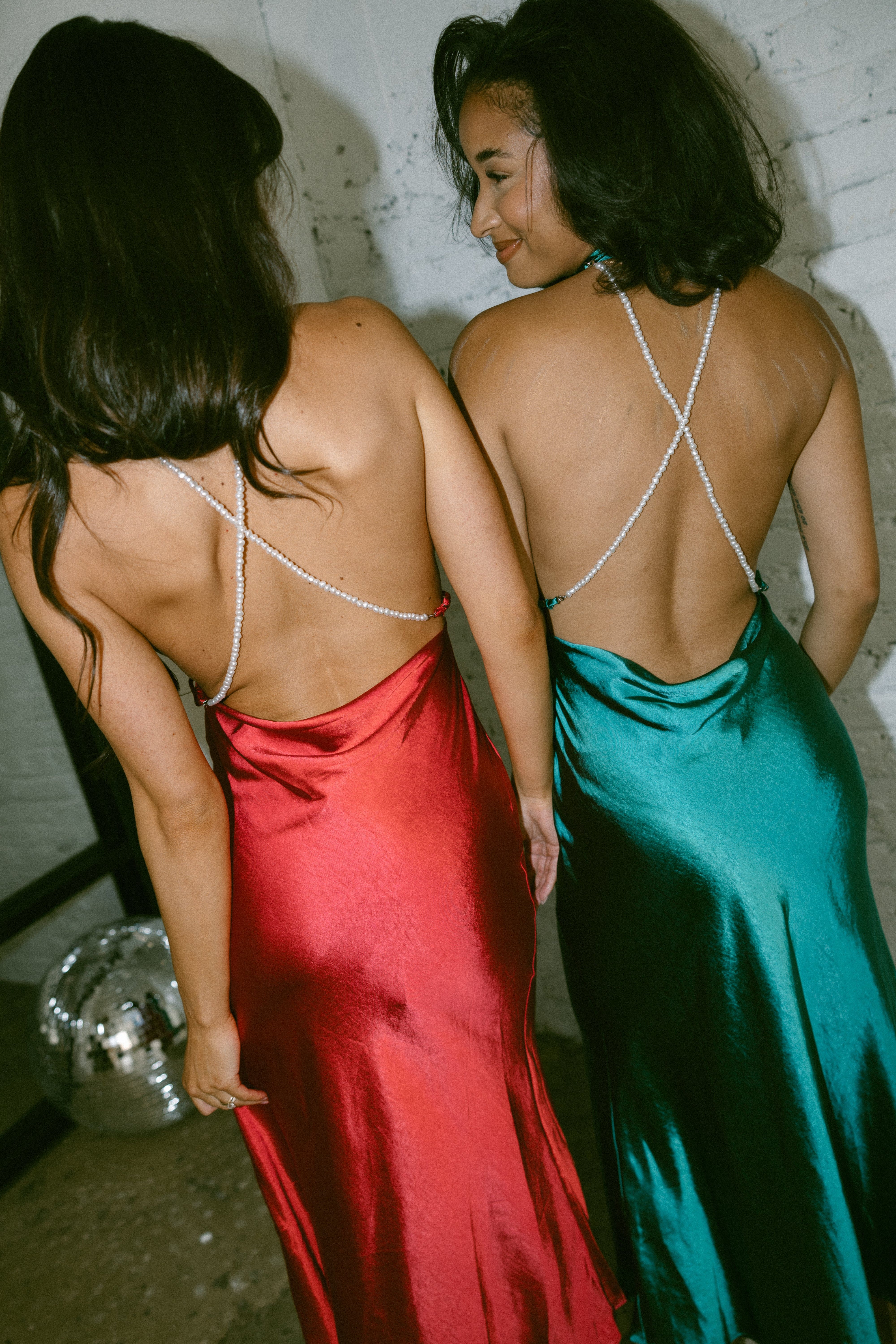 Introducing the Ravishing Pearl Gown - the perfect addition to your holiday wardrobe. This chic maxi dress features a side zipper and adjustable straps for a comfortable and stylish fit. Made with a satin-inspired fabric, it's perfect for the winter season. Upgrade your holiday look with this elegant gown.