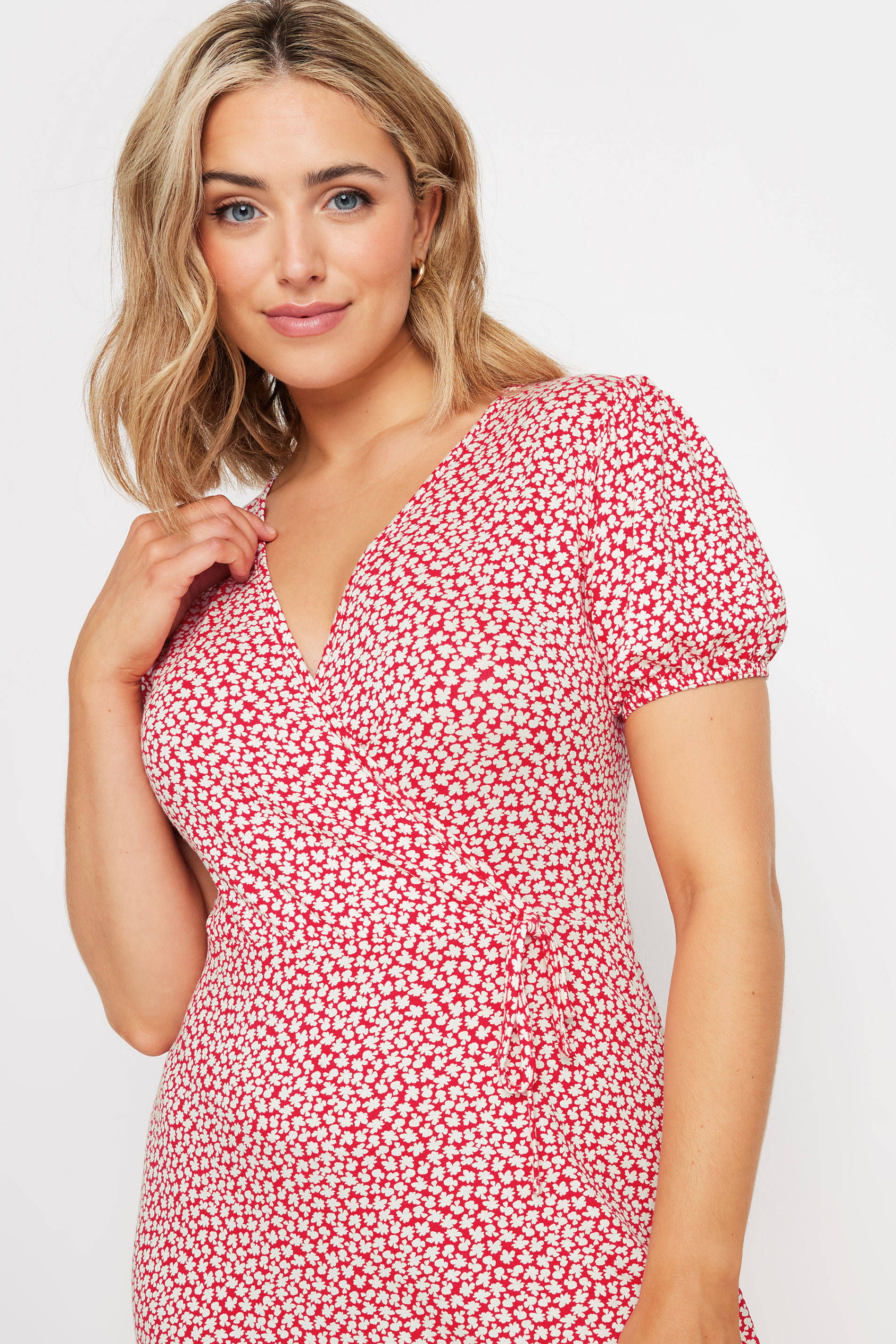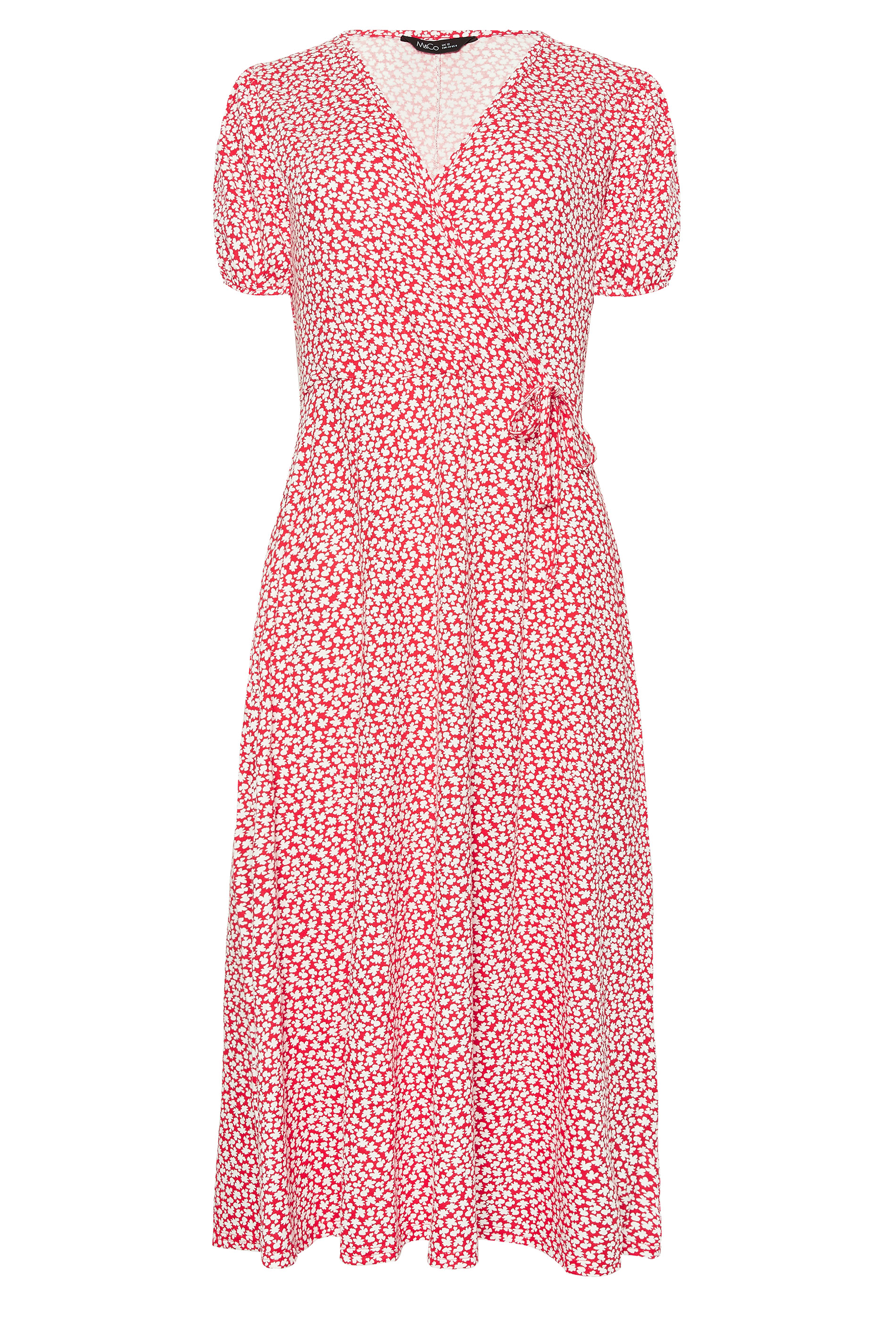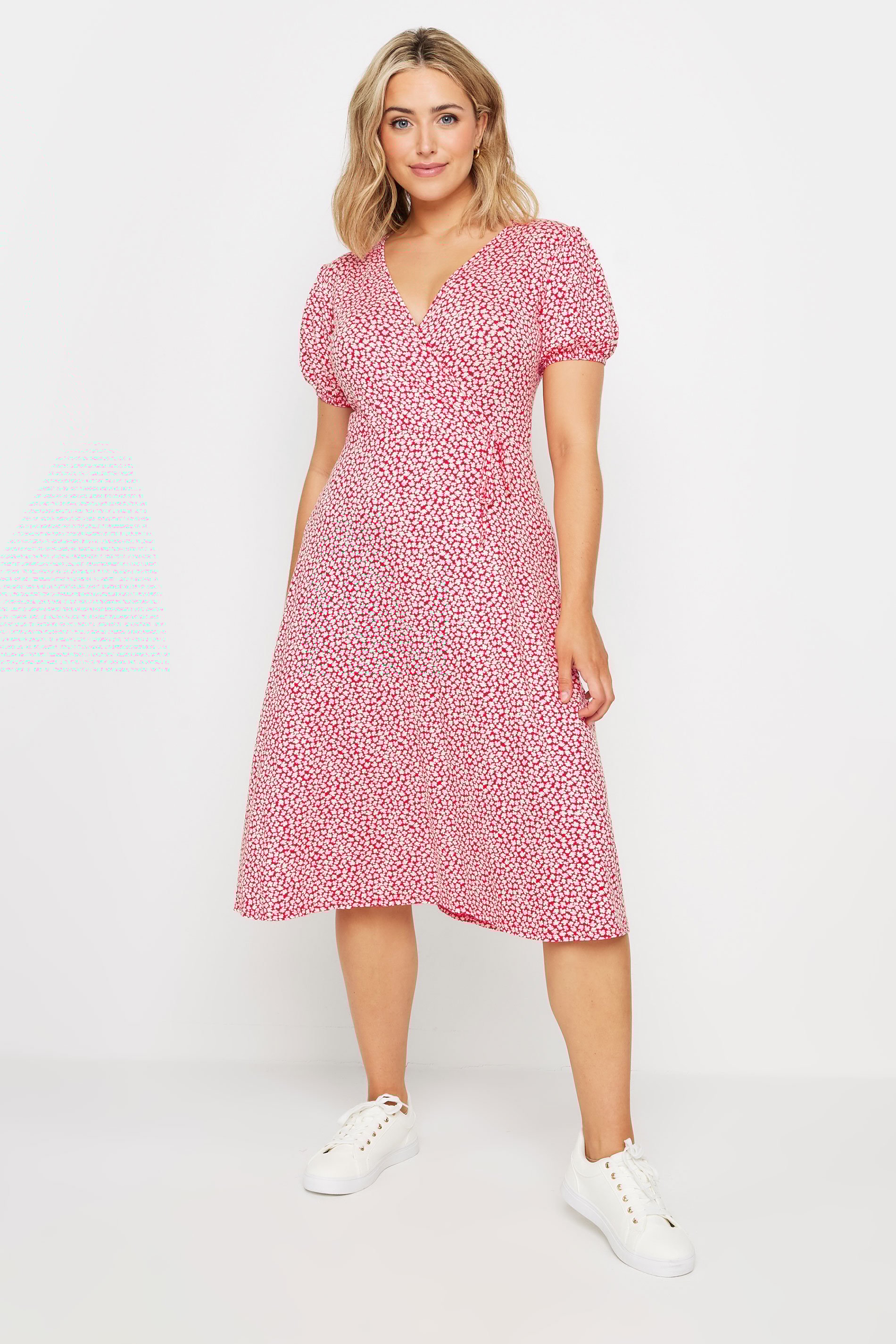 This new-in dress is a summer essential. Made from a soft jersey fabric, this dress features a ditsy floral print, wrap style and short sleeves. Partner with sandals for a lovely daytime look.