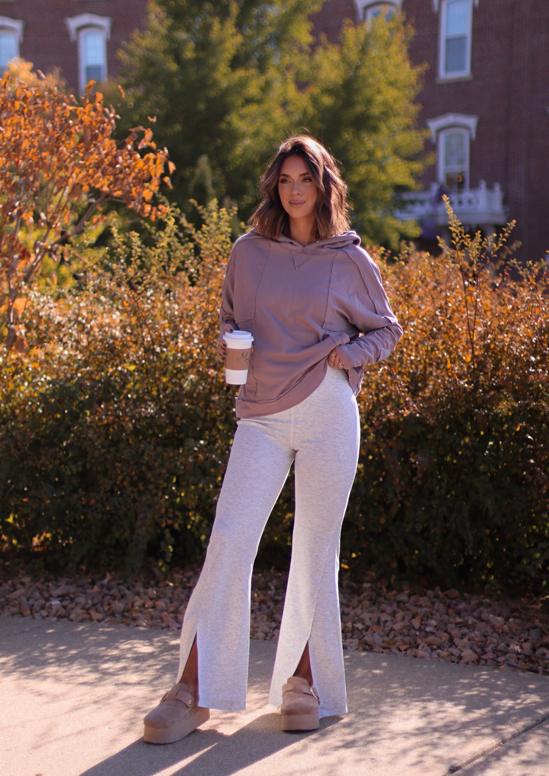 Our Repose Flare Pants are designed to make a statement. Crafted from ultra-soft and stretchy fabric, these high-waisted pants flatter any figure, while the front slit detail elevates the style to something truly chic. Perfect for lounging, shopping, or elevated brunch dates, these pants are a must-have fall transition piece that combine comfort with style and trend.