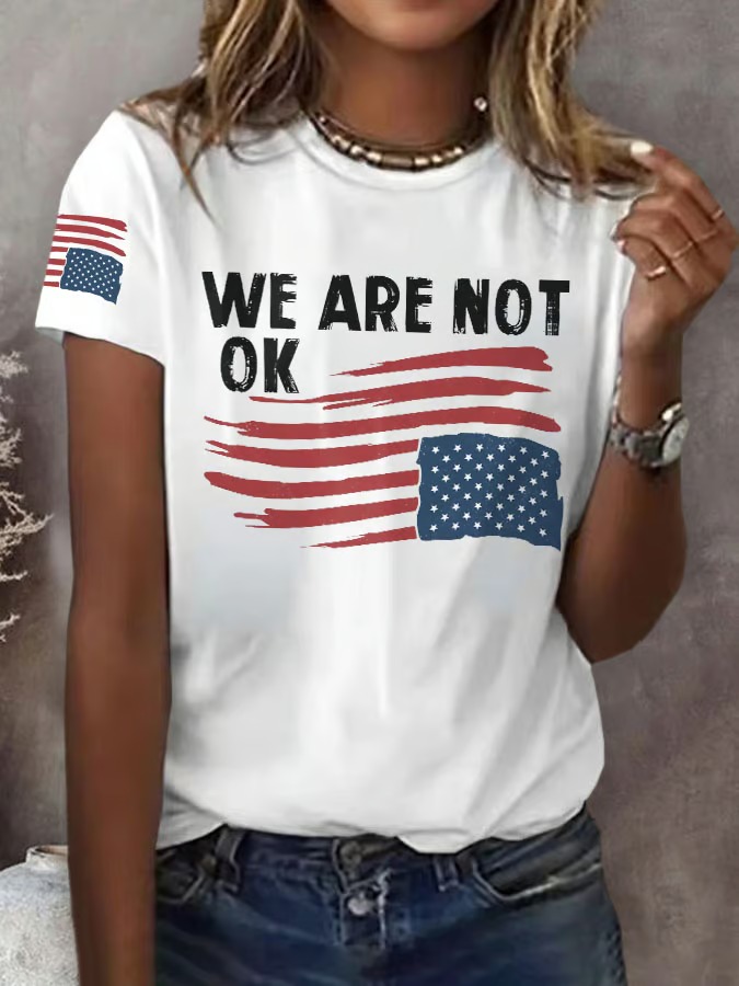 Retro We Are Not Ok Print T-Shirt