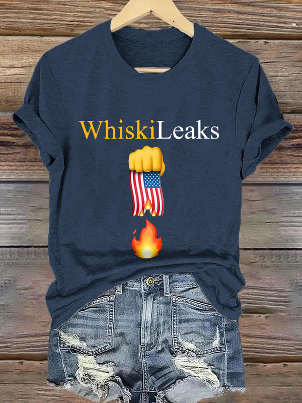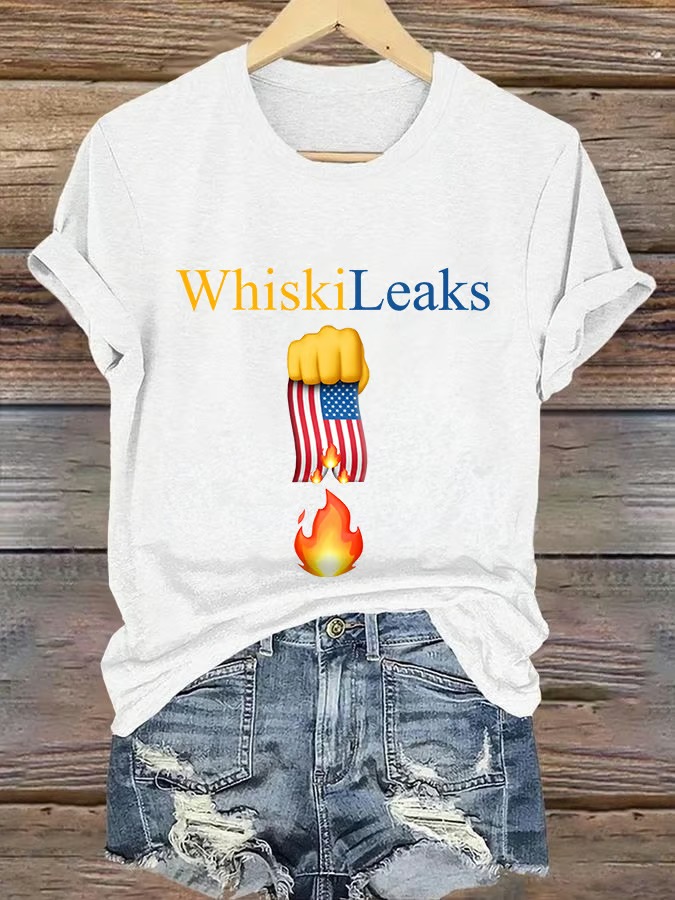 Retro Whiskileaks Fist Flag Fire Print T-Shirt 9527284