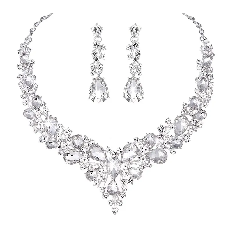 Rhinestone Crystal Necklace and Earrings Set 310448