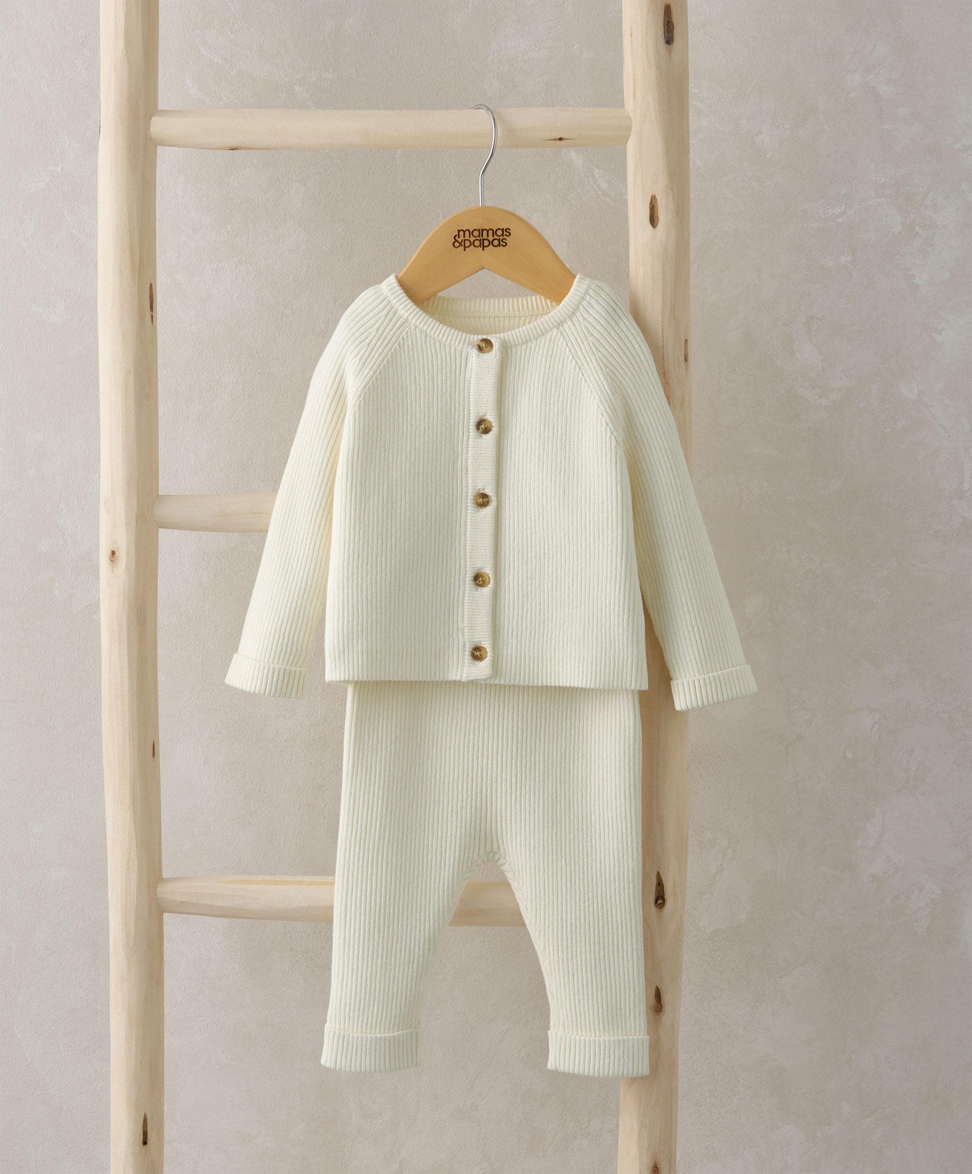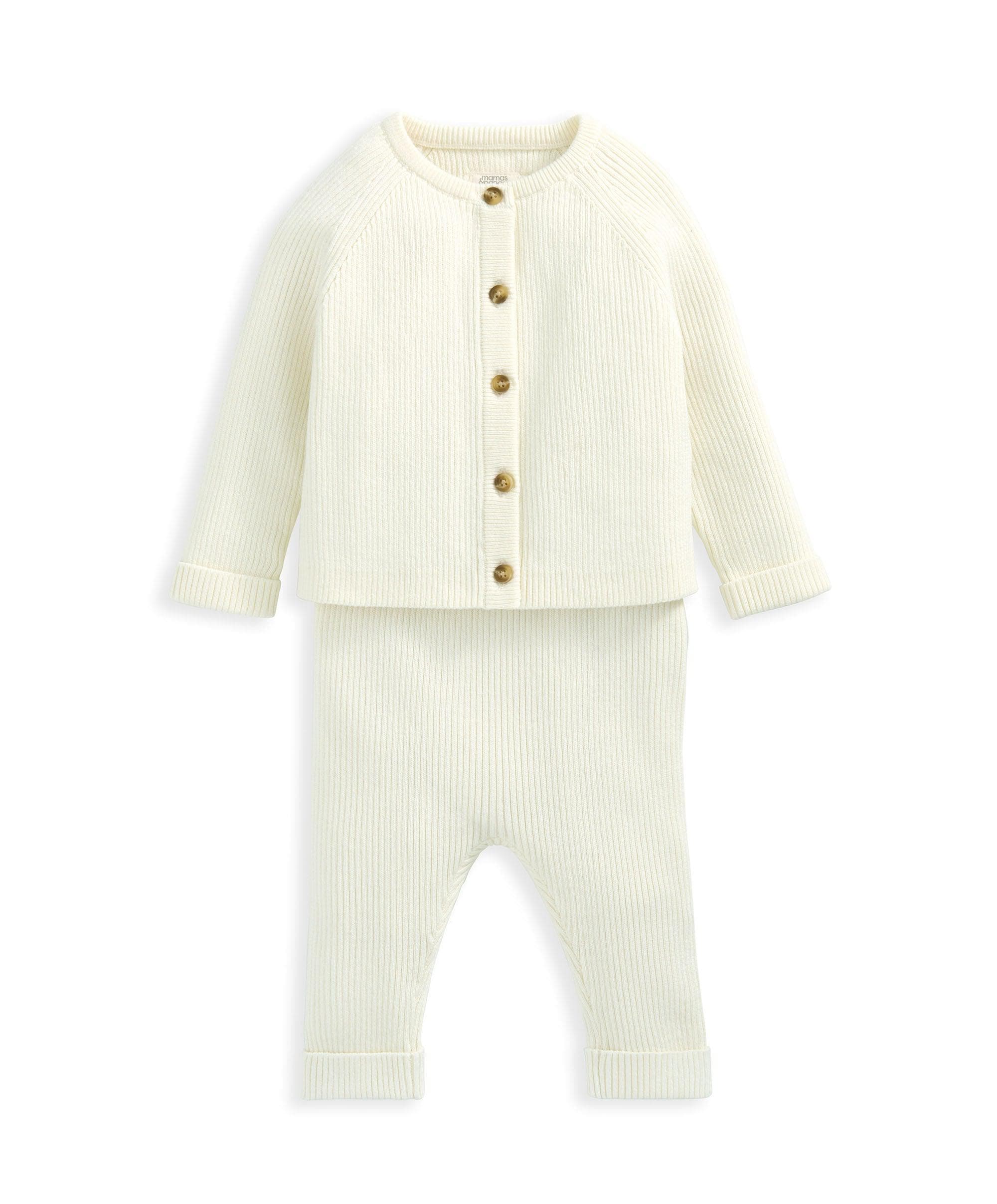 2-piece cardigan and leggings set. Includes knitted long-sleeved cardigan with button fastening and textured ribbed cotton leggings.