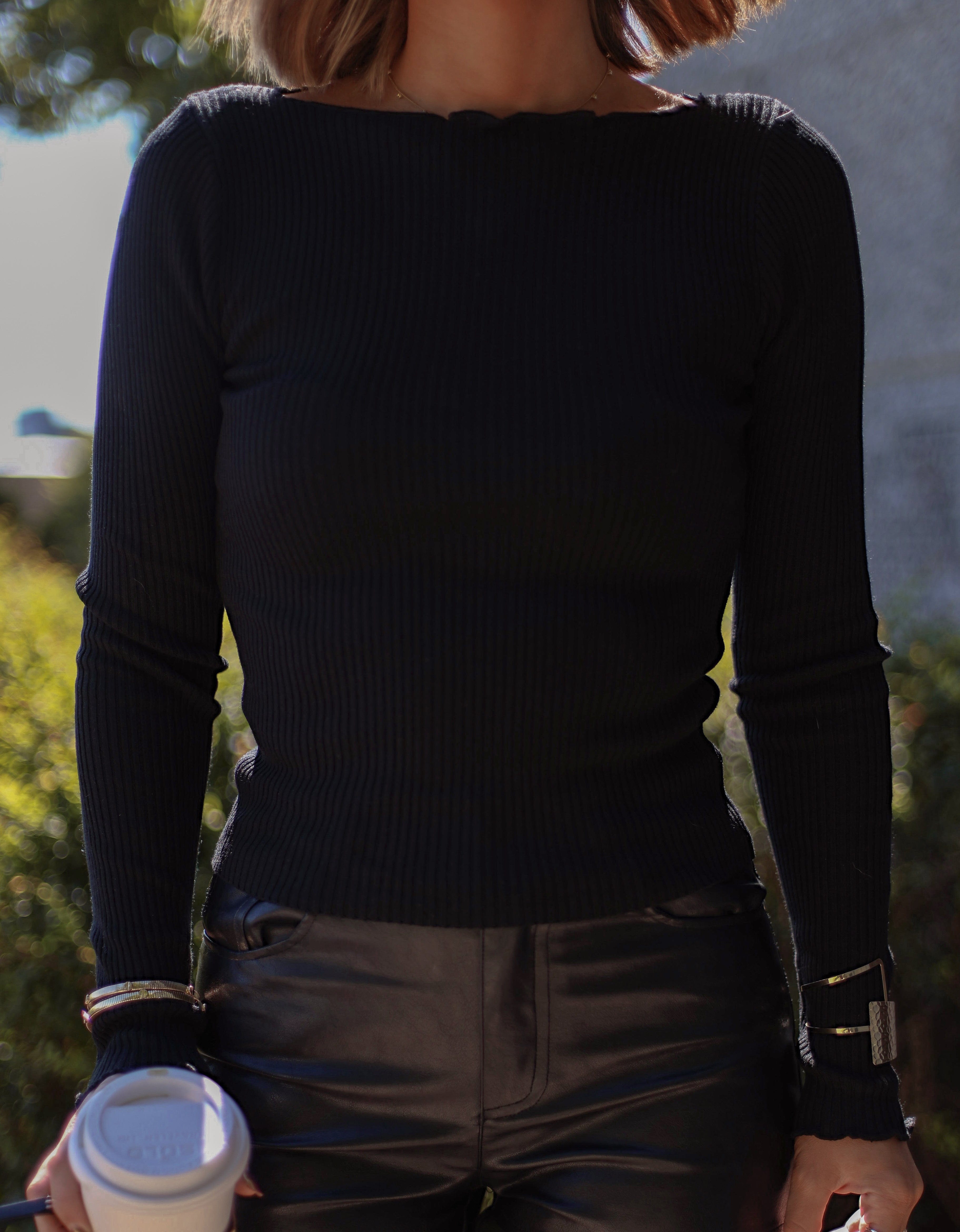 Feel the soft, stretchy comfort of this essential fall piece. With its ribbed knit and rounded neckline, this ribbed sweater top is a classy, sophisticated essential you can't go without. Its long sleeve and basic cut make it the perfect transition and layering piece, and it's sure to become a must-have for any trendy wardrobe.
