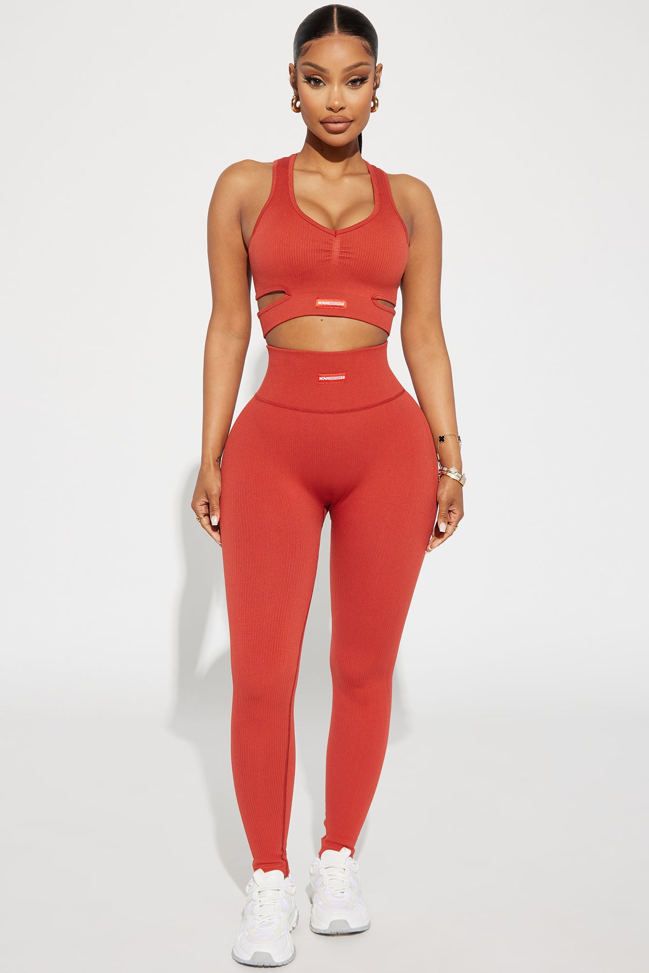 Roxane Ribbed Seamless Active Sports Bra - Rust