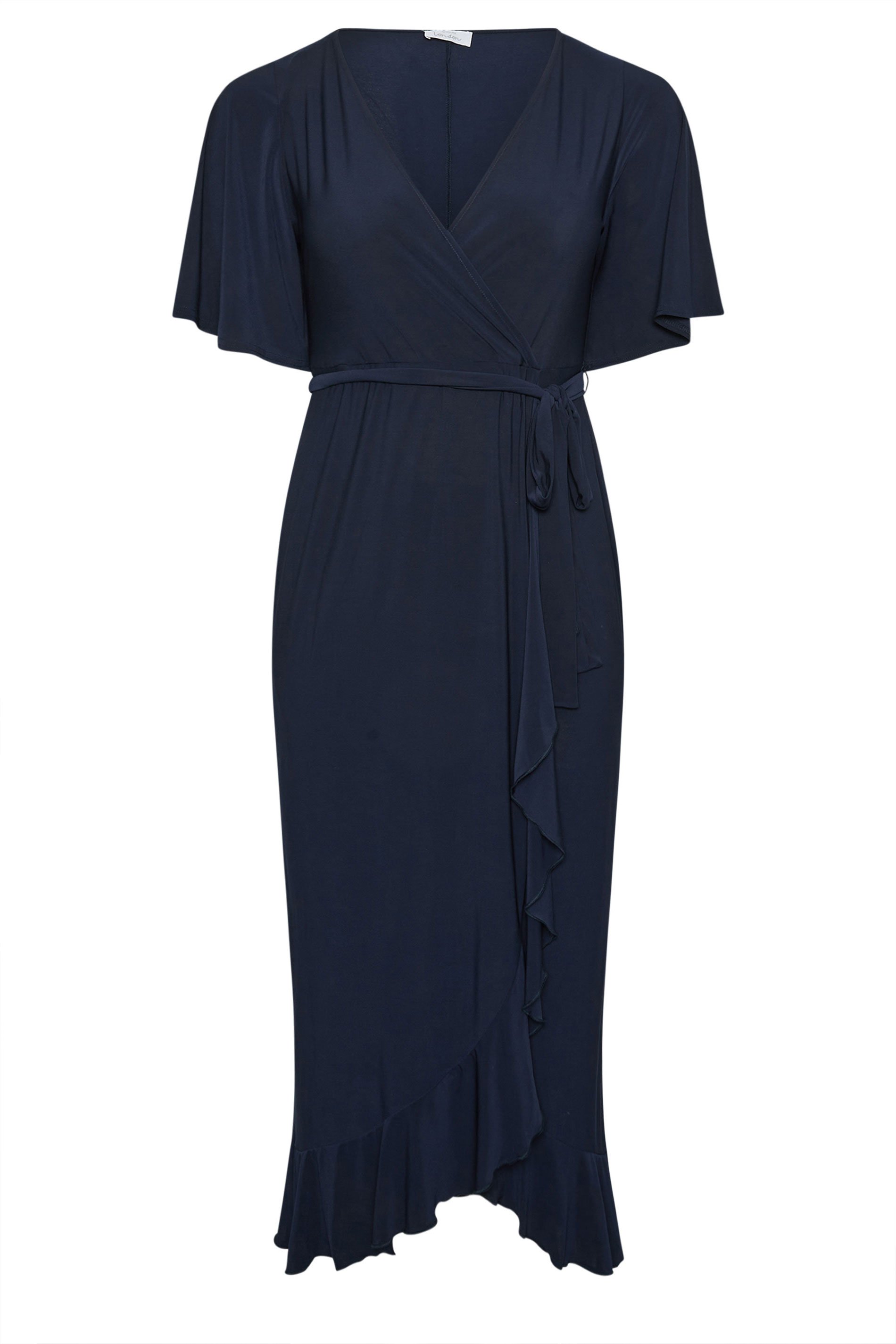 Revamp your dress collection with this wrap dress. Made from a soft jersey fabric, this dress features a ruffle hem, in a wrap style. Pair with heels and one of our clutches for an unforgettable look.