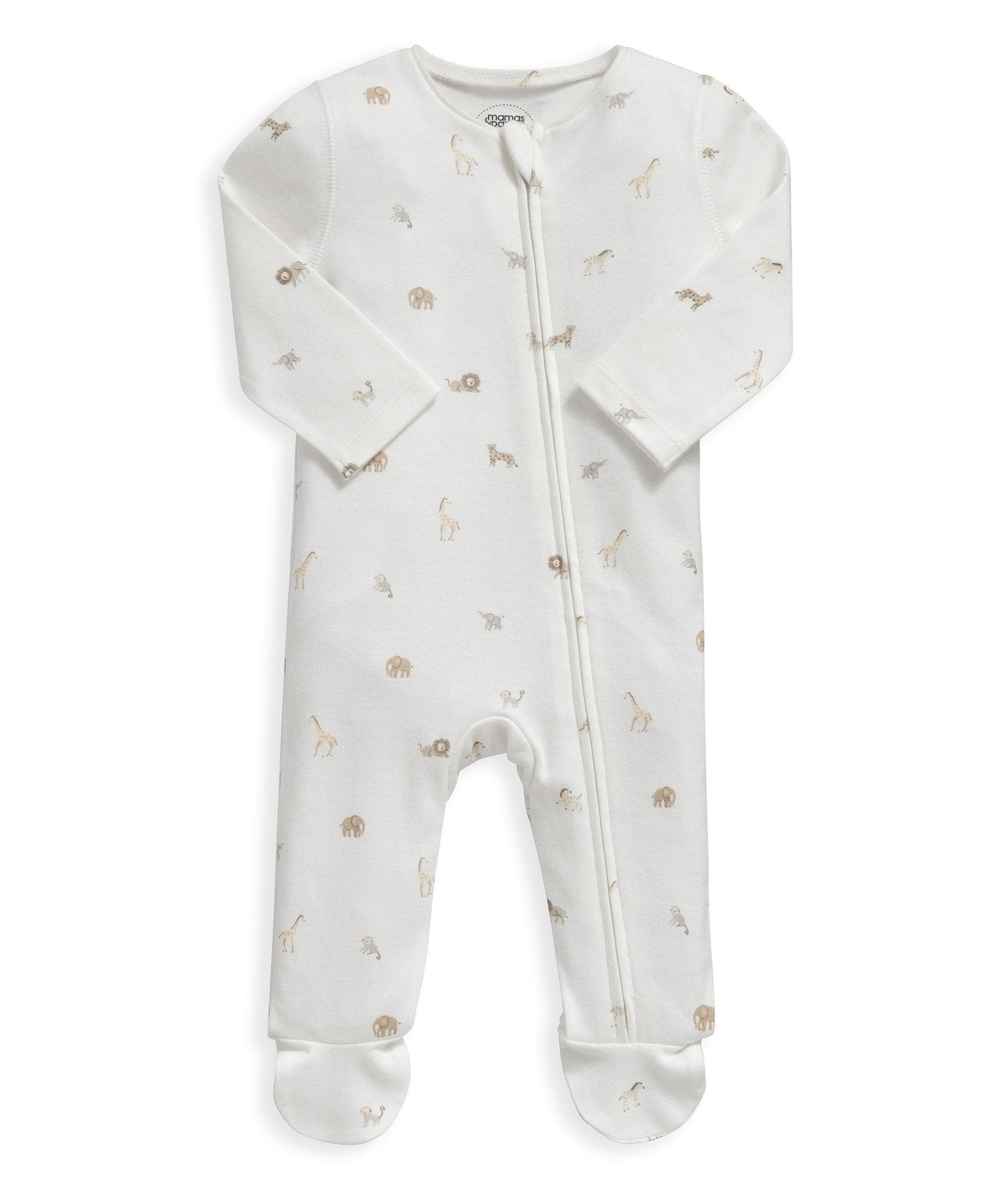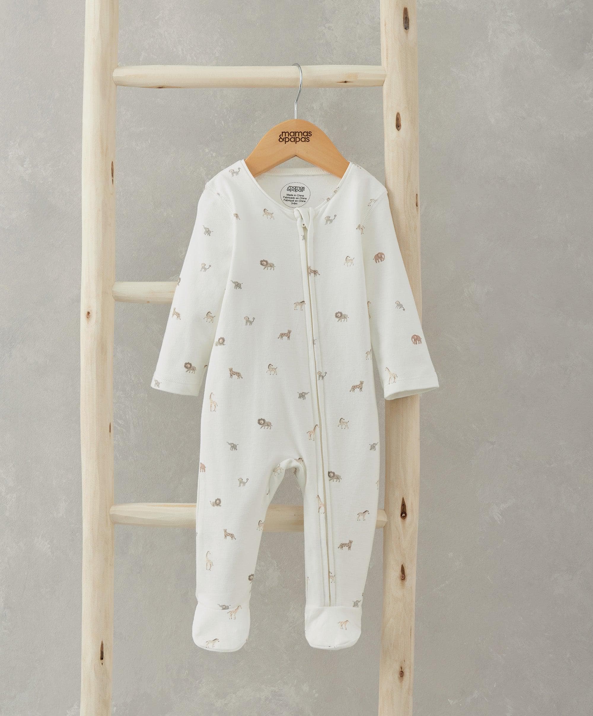Whether youre cuddling up at home or getting all wrapped up for a walk, this all-in-one suit will keep baby cosy. Its got a cute safari inspired print and a really handy zip that goes all the way down the front, so its super-easy to get your little one in and out of.