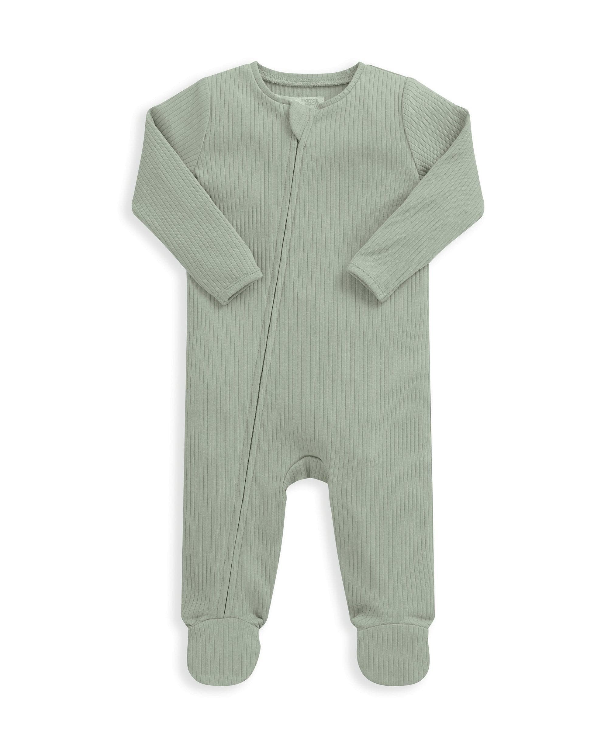 Crafted from 100% organic ribbed cotton this beautiful all in one sleepsuit looks stylish, classic and feels ultra soft and gentle. A zip fastening makes dressing, undressing and nappy changes seriously easy, while the sage green shade is a muted on-trend.