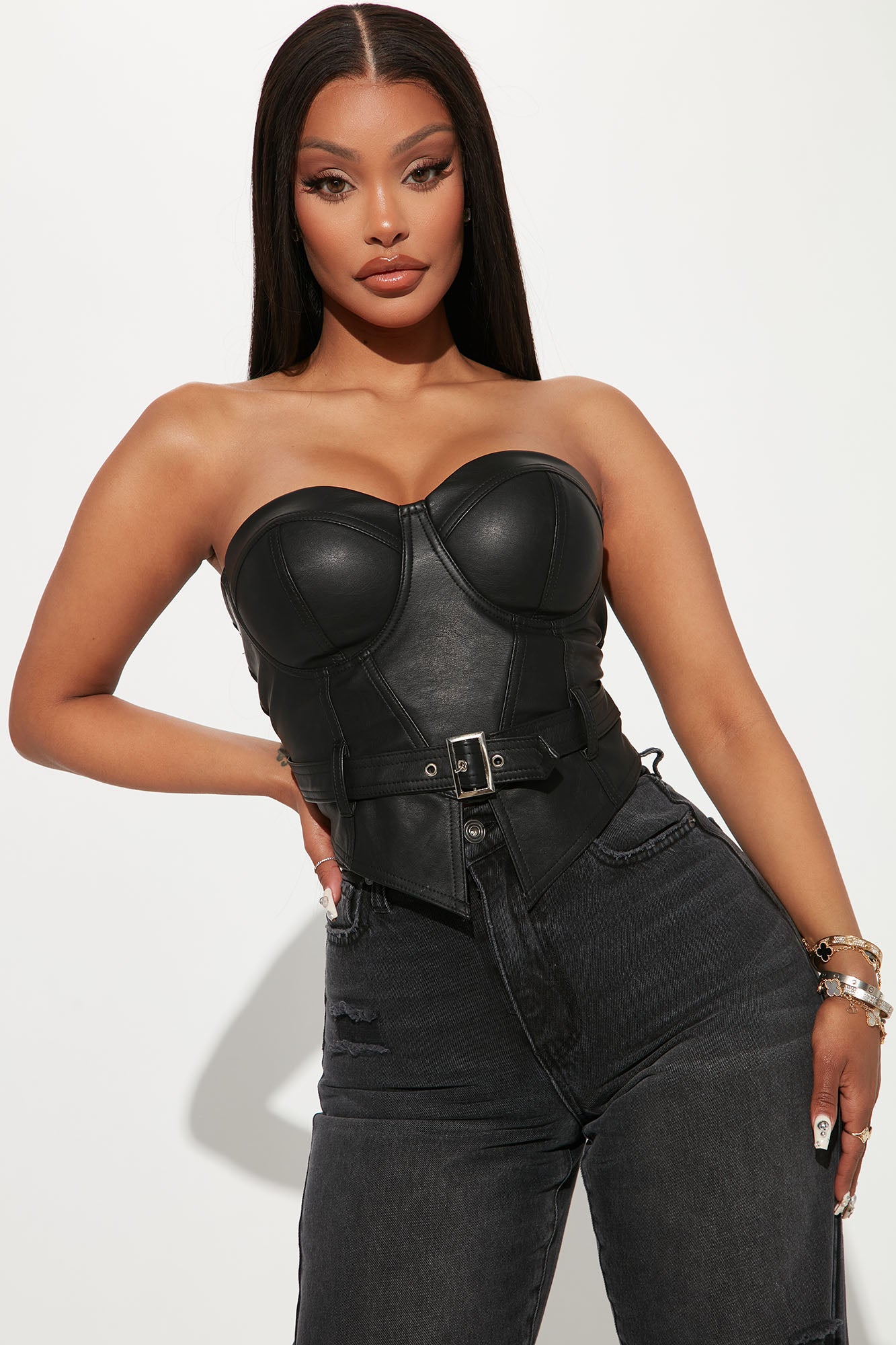 - PU Leather Bustier Top
