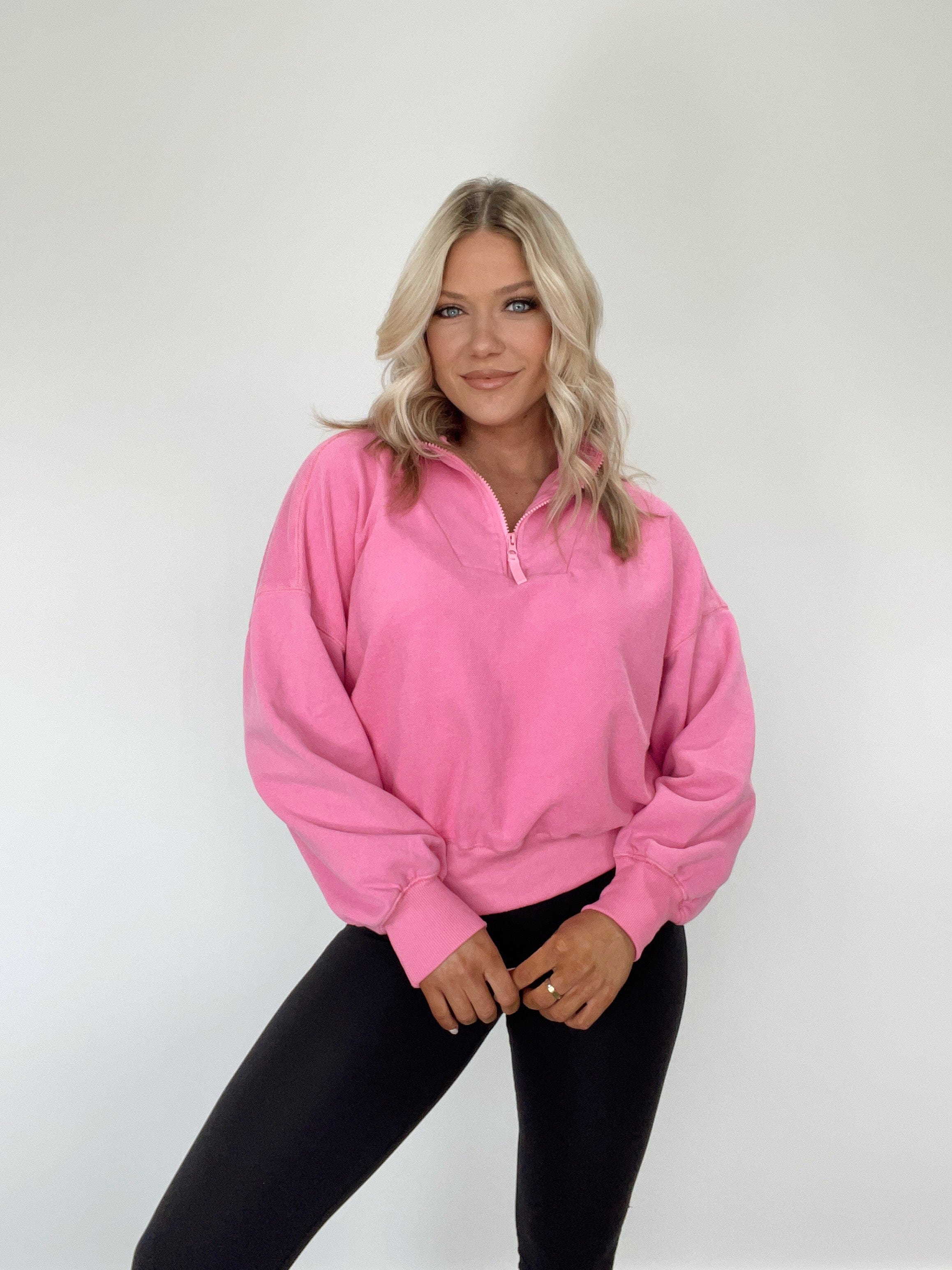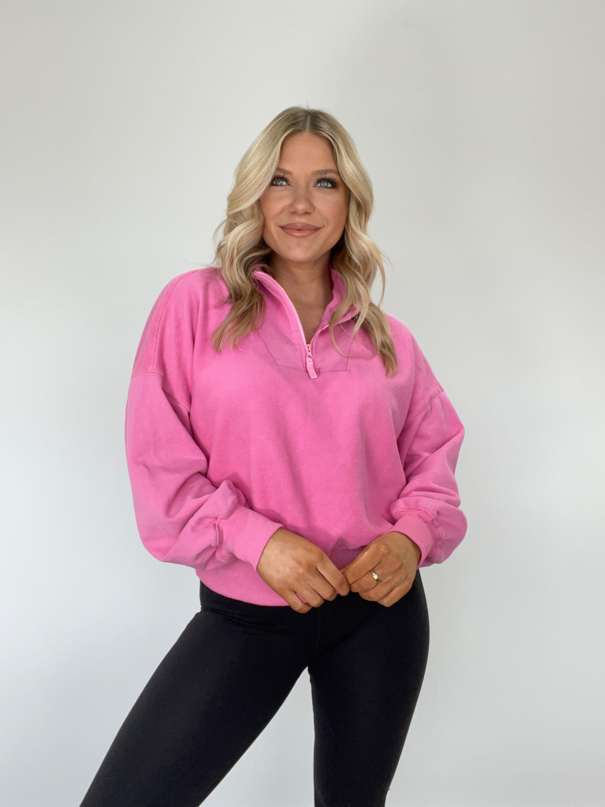 The Saturdaze Pullover is the ideal everyday piece of clothing. Crafted with a soft and stretchy fabric, a collared neckline, and a quarter zip, this pullover provides great comfort, while its vibrant and bright colors add a pop of color to any outfit. Wear it while lounging, running errands, or just everyday wear - pair it with your favorite leggings for a cozy and stylish look.