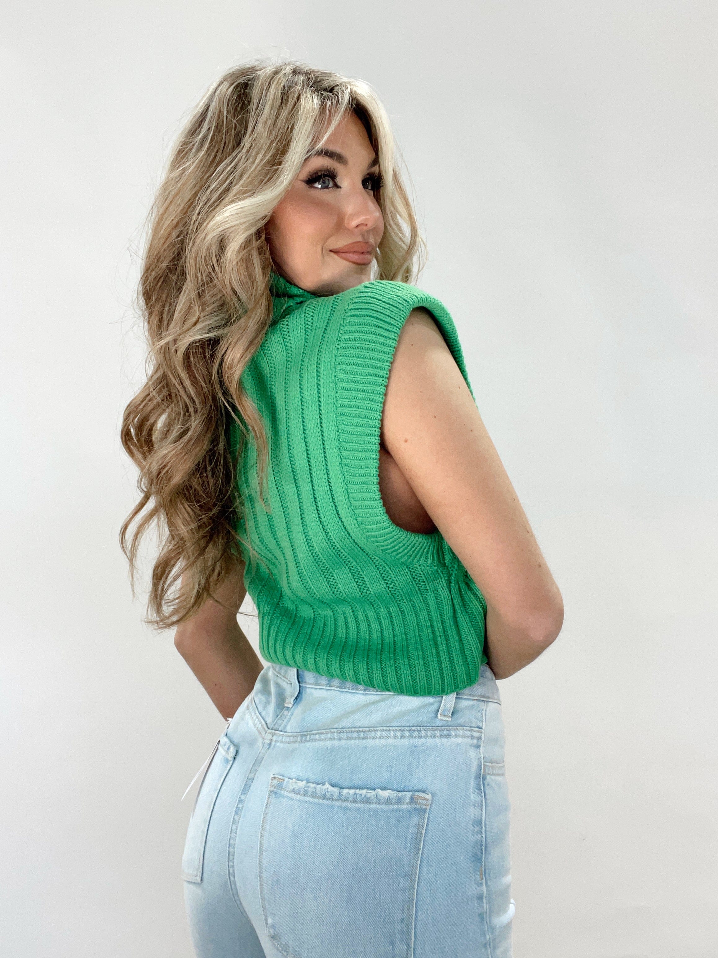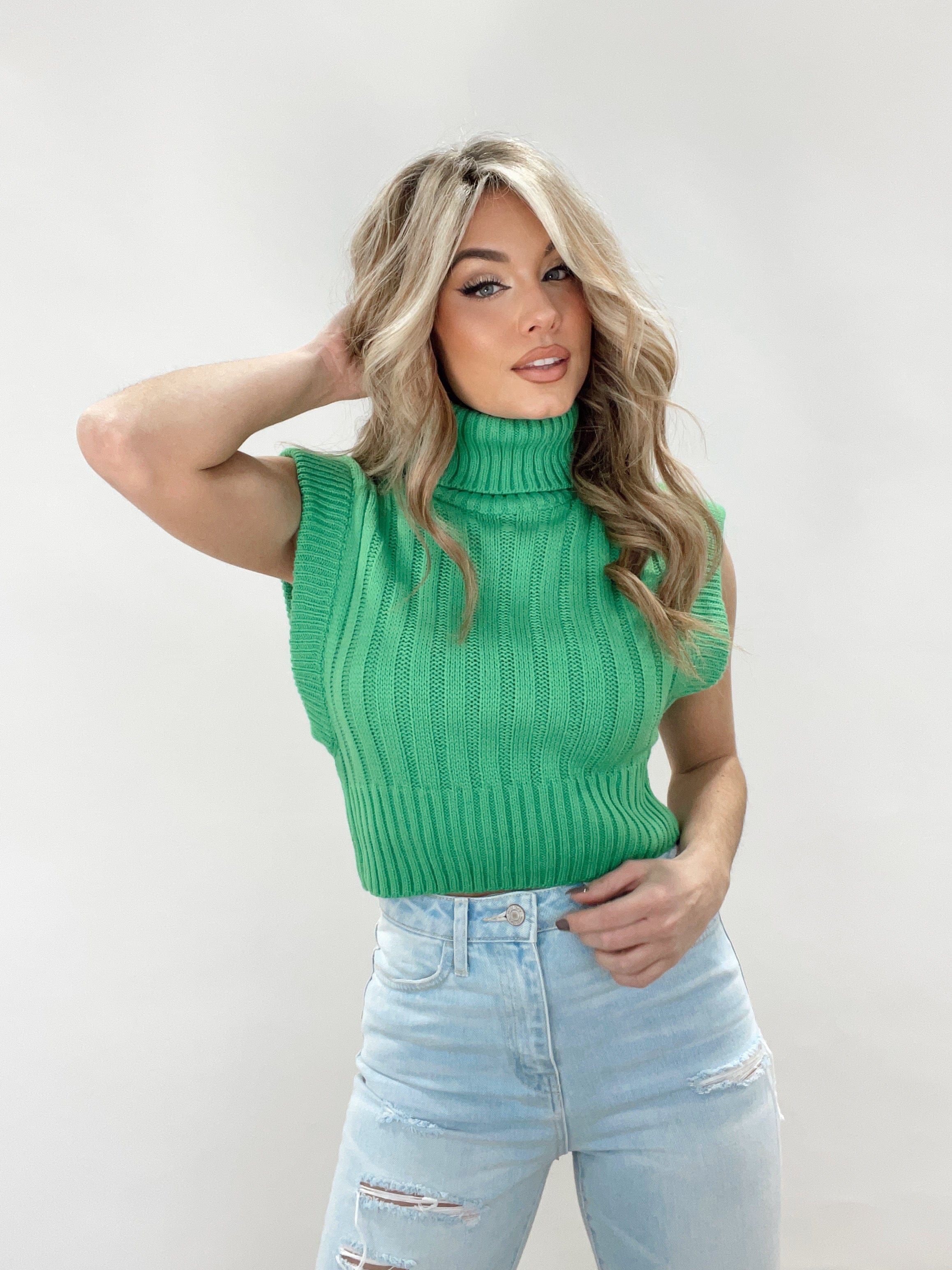 Add a bright pop of color to your wardrobe in Lane 201's Seeing Green Sweater Vest! This sleeveless vest features a super soft knit material, a turtleneck, and a slightly cropped fit. The perfect piece to elevate your everyday look!