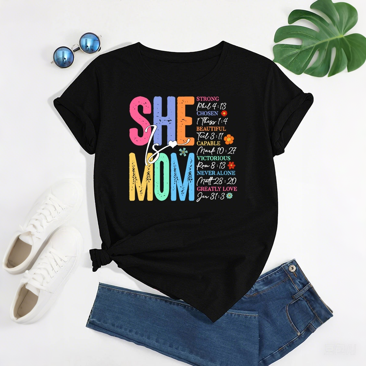She Is Mom Strong Chosen Beautiful Capable Victorious Never Alone Greatly Love Printed Round Neck Short Sleeve T-Shirt 9519264
