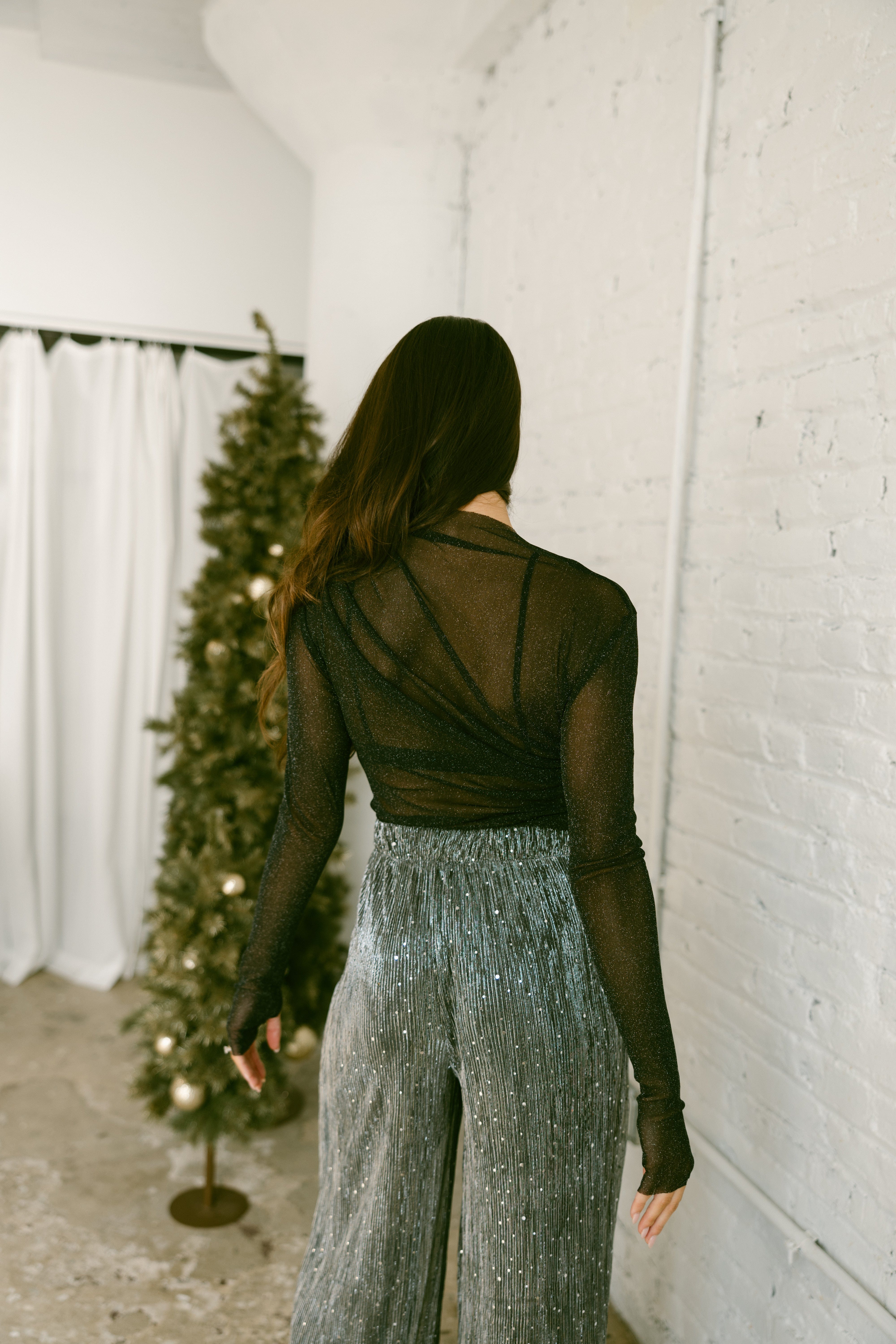 Effortlessly make a statement this winter in our Sheer Mesh Draped Bodysuit. With its thong bottom and snap closures, this stretchy and very sheer bodysuit is the perfect addition to your holiday wardrobe. The ruching detail on one shoulder and side adds a touch of elegance. Perfect for the holiday season!