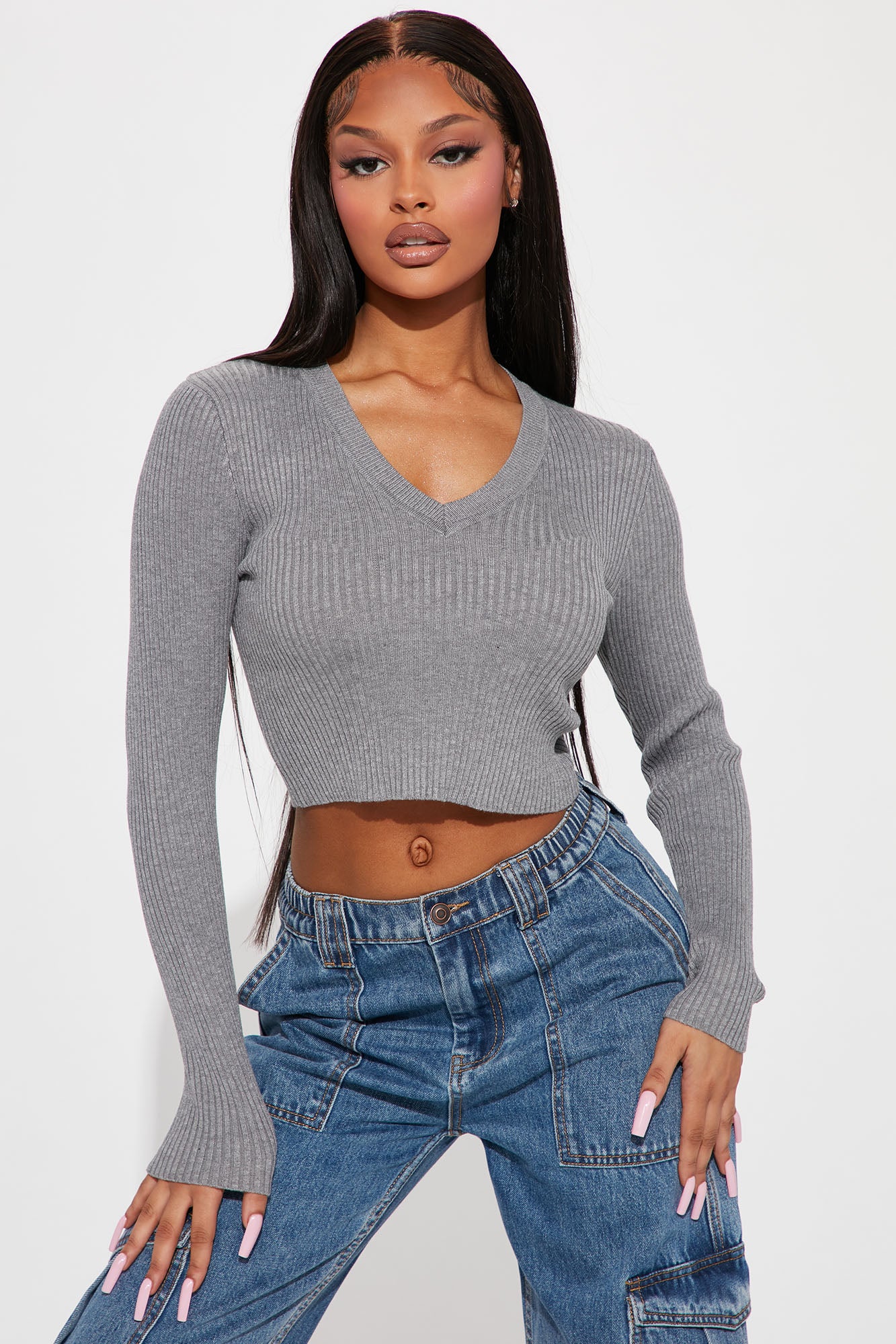 Sheila Ribbed Crop Sweater - Heather Grey 278165