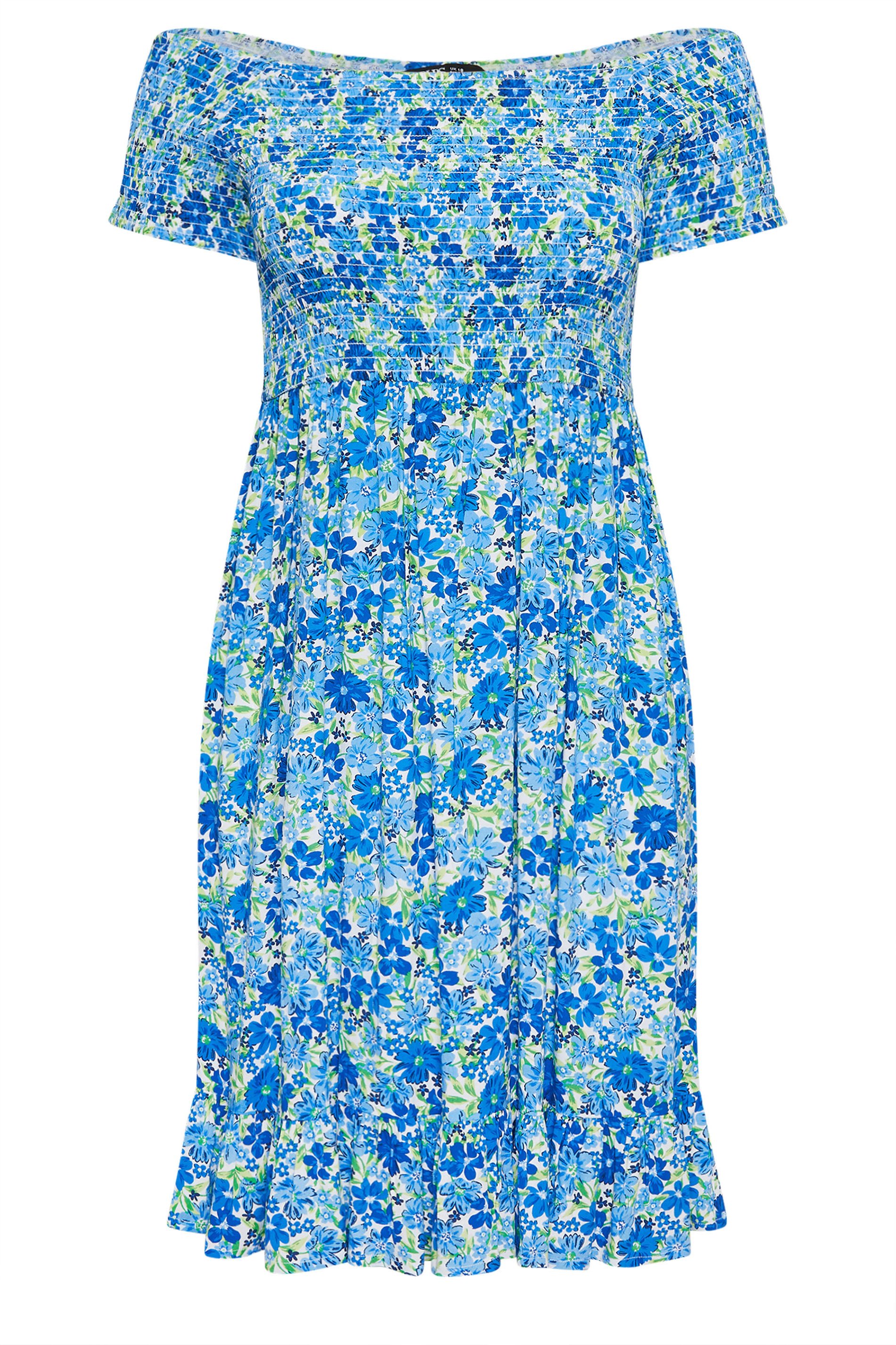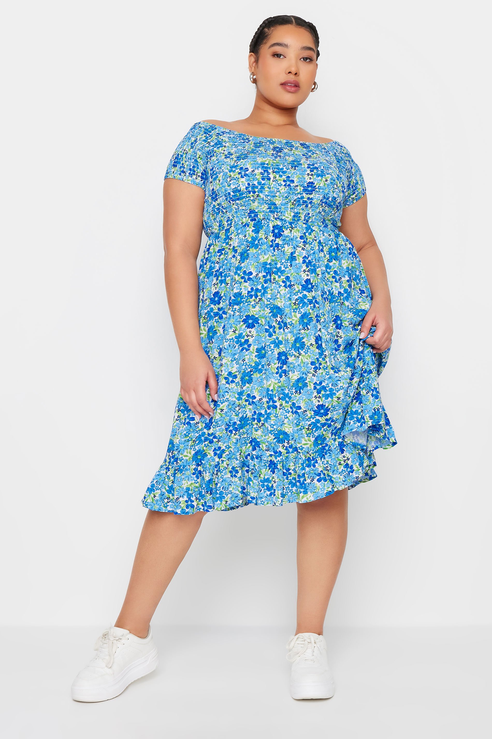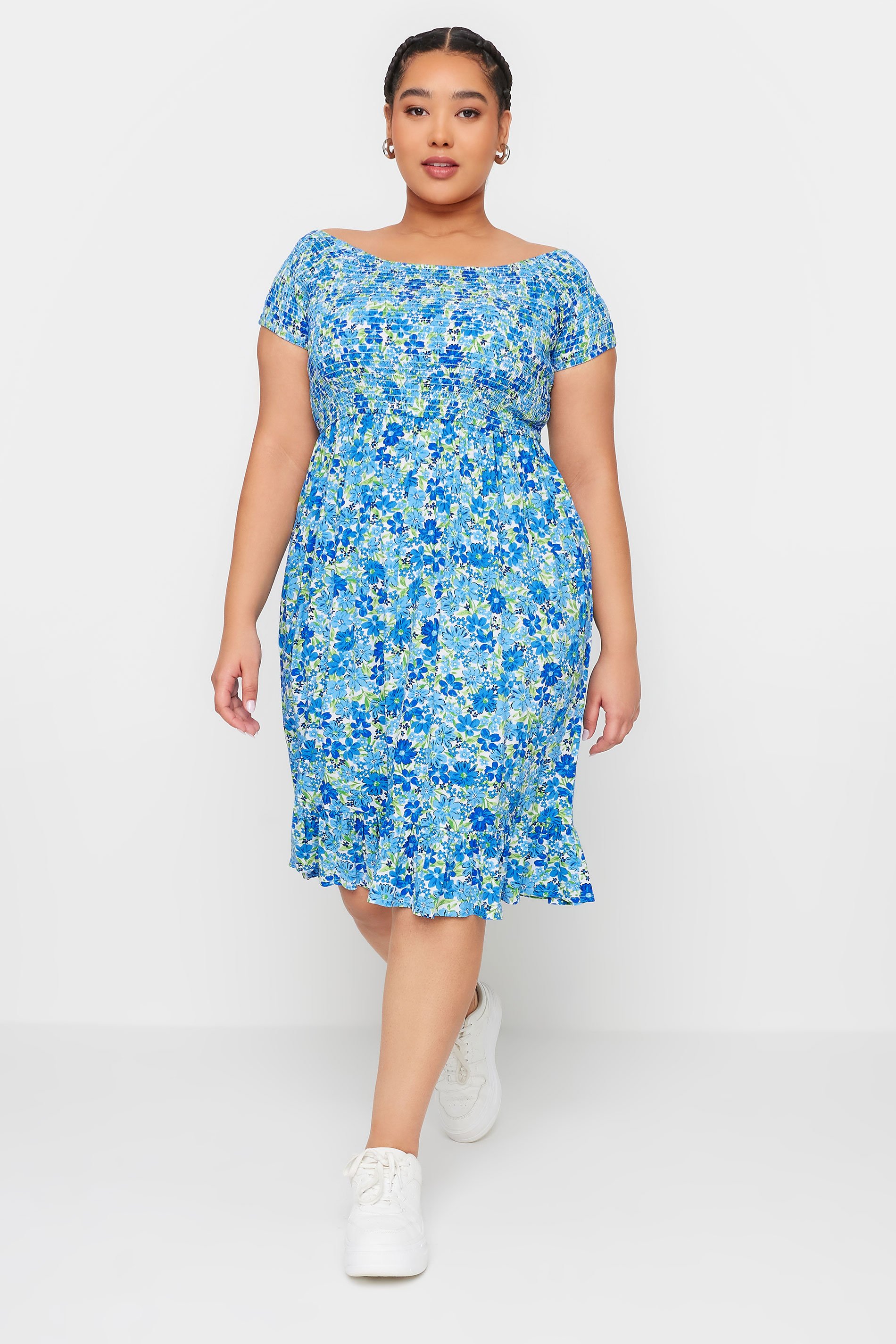 Upgrade your dresses collection with this floral dress! Made from a soft woven fabric, this dress features a bardot style, shirred top and a floral print, in a midi length. Pair with sandals for an outfit you'll wear on repeat!