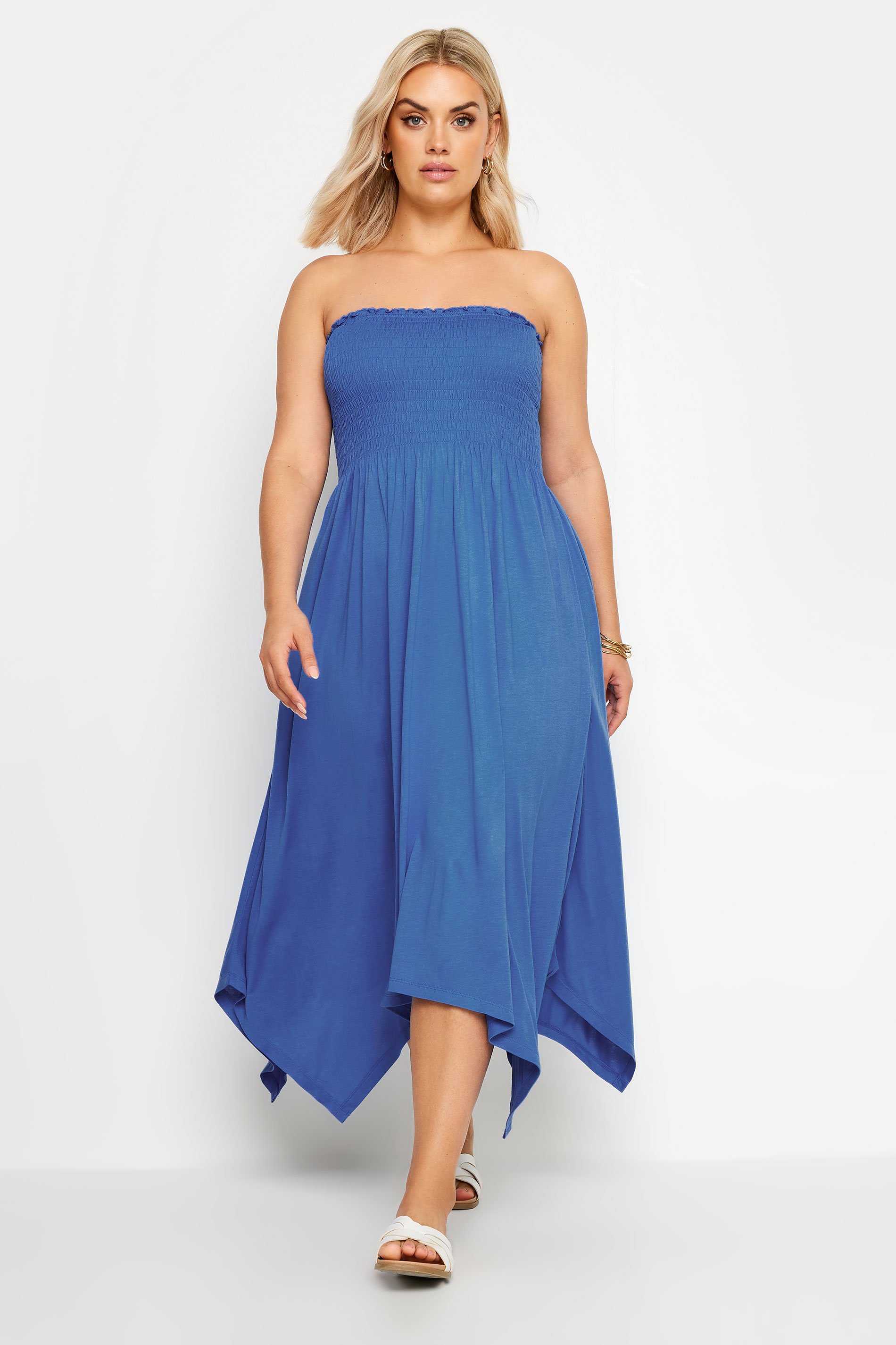 Upgrade your summer collection with this new-in midi dress. Made from a comfortable jersey fabric, it features shirred upper fabric, with a hanky hemline and is complete in a bandeau style. Team with sandals for a look that you can rely on for ease and comfort.