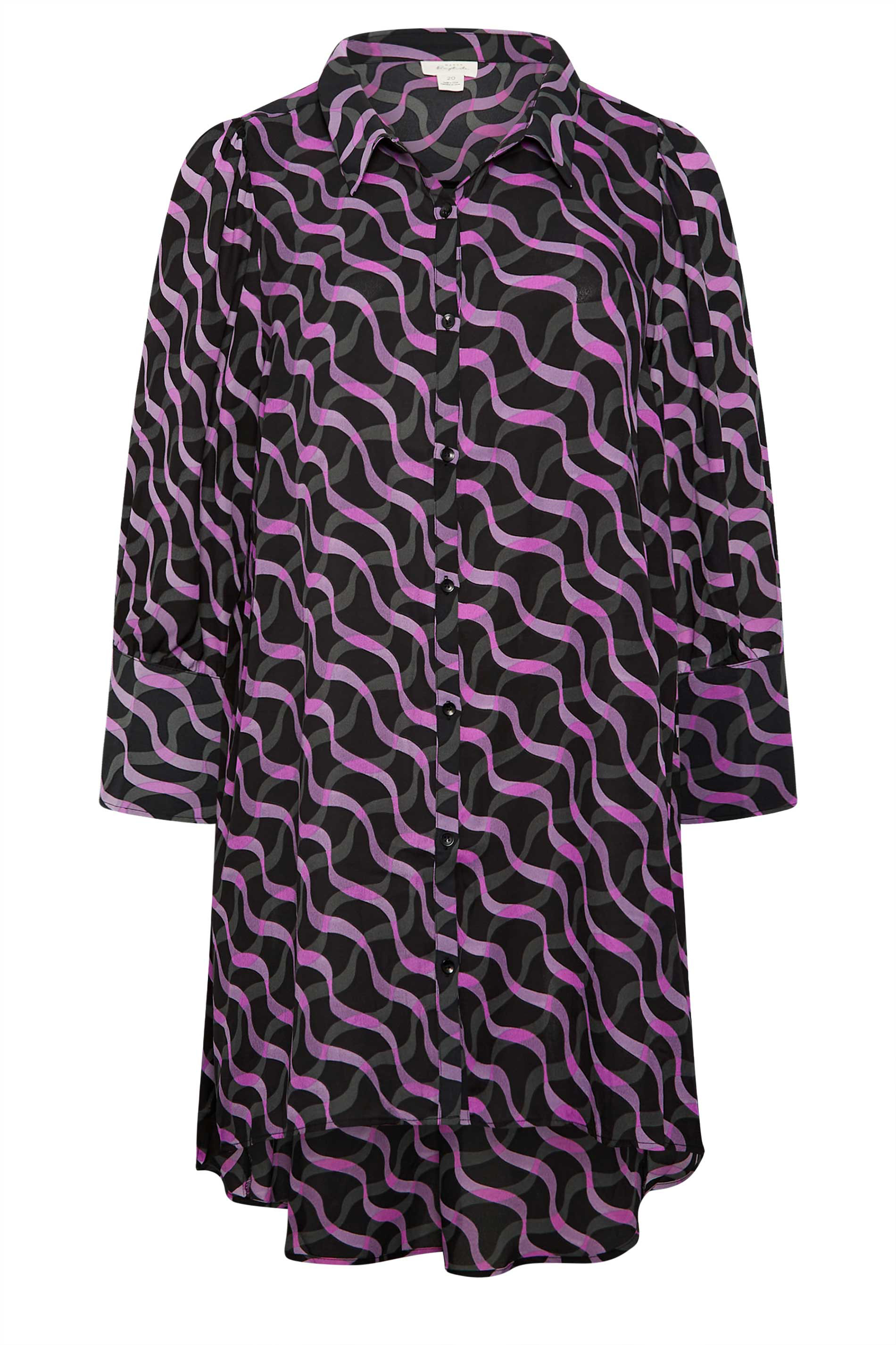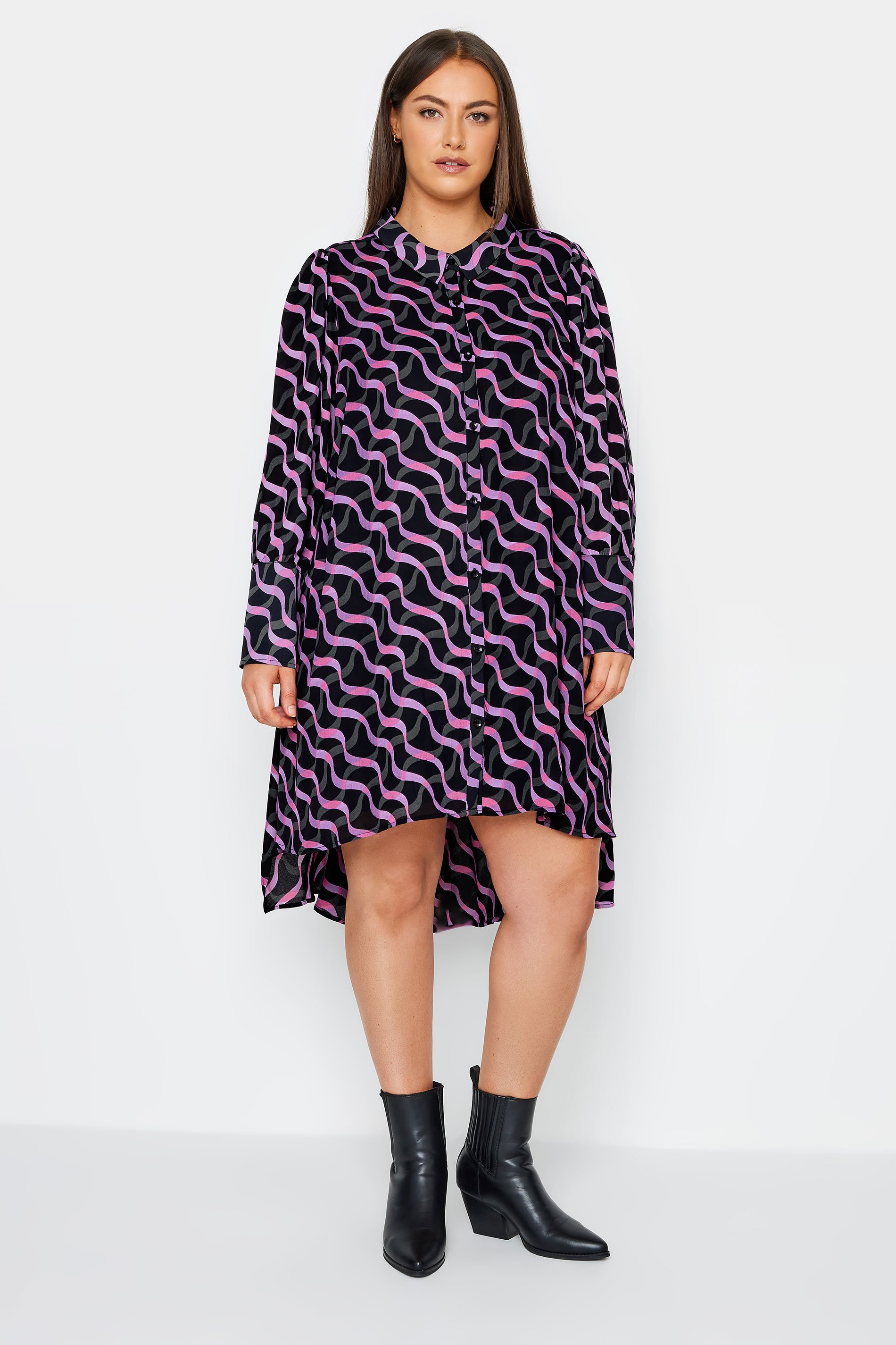 The City Chic Black & Purple Swirl Print Shirt Dress is a sartorial blend of elegance and contemporary flair, perfectly tailored for those seeking a versatile wardrobe staple. This mesmerizing piece features a dynamic swirl print in rich shades of purple and black, offering a visual allure while the structured shirt dress silhouette provides a polished look suitable for various occasions. Whether you're attending a business meeting or enjoying a weekend brunch, this dress combines comfort with style, ensuring you step out with confidence and grace.