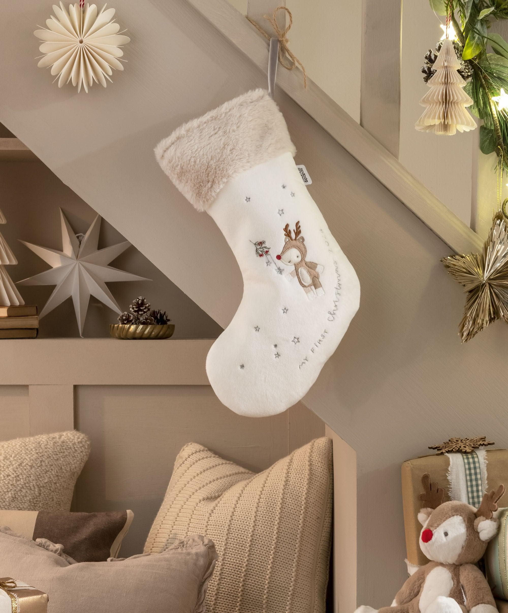 - The gold stitched 'My First Christmas 2024 makes this the perfect keepsake
