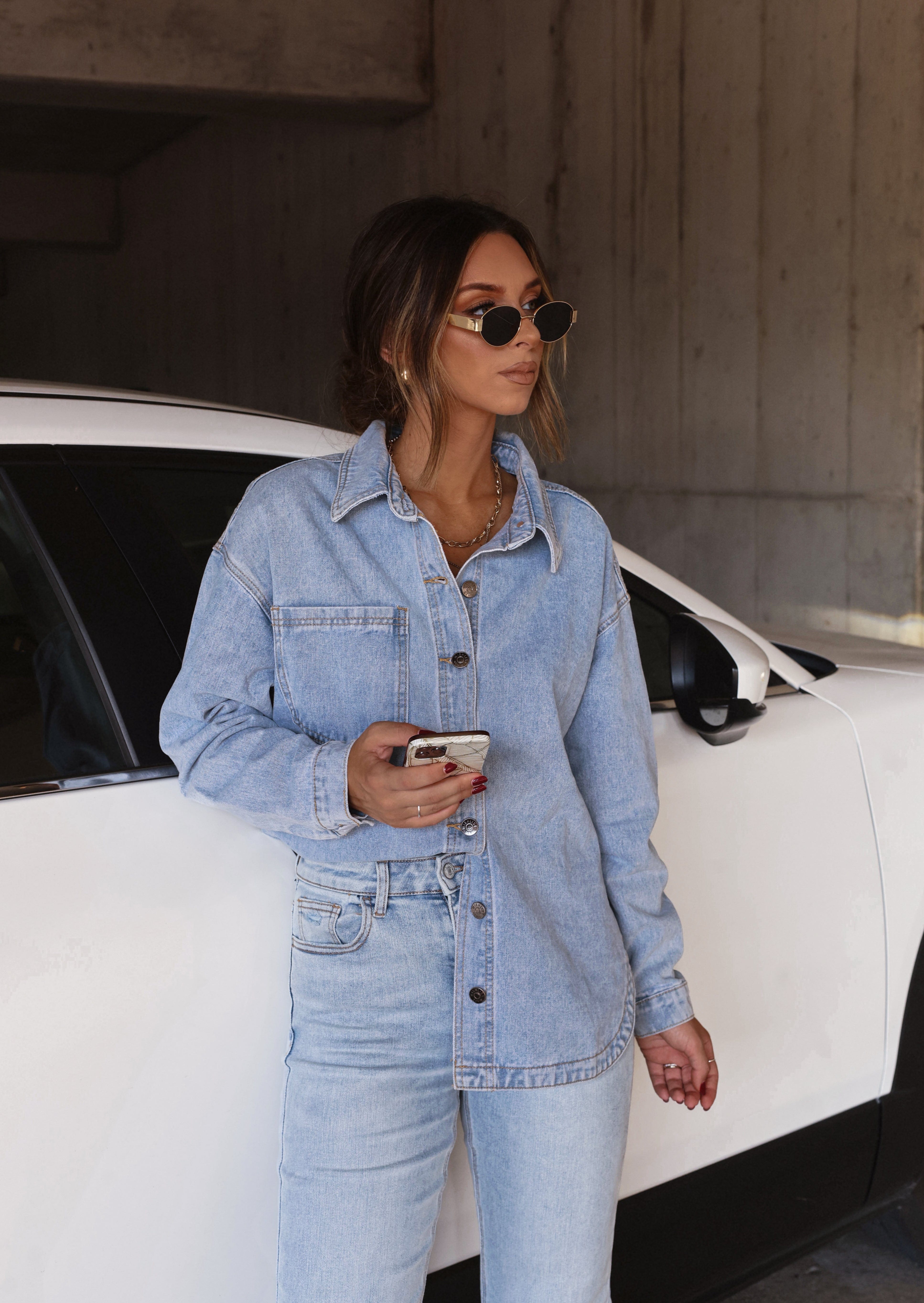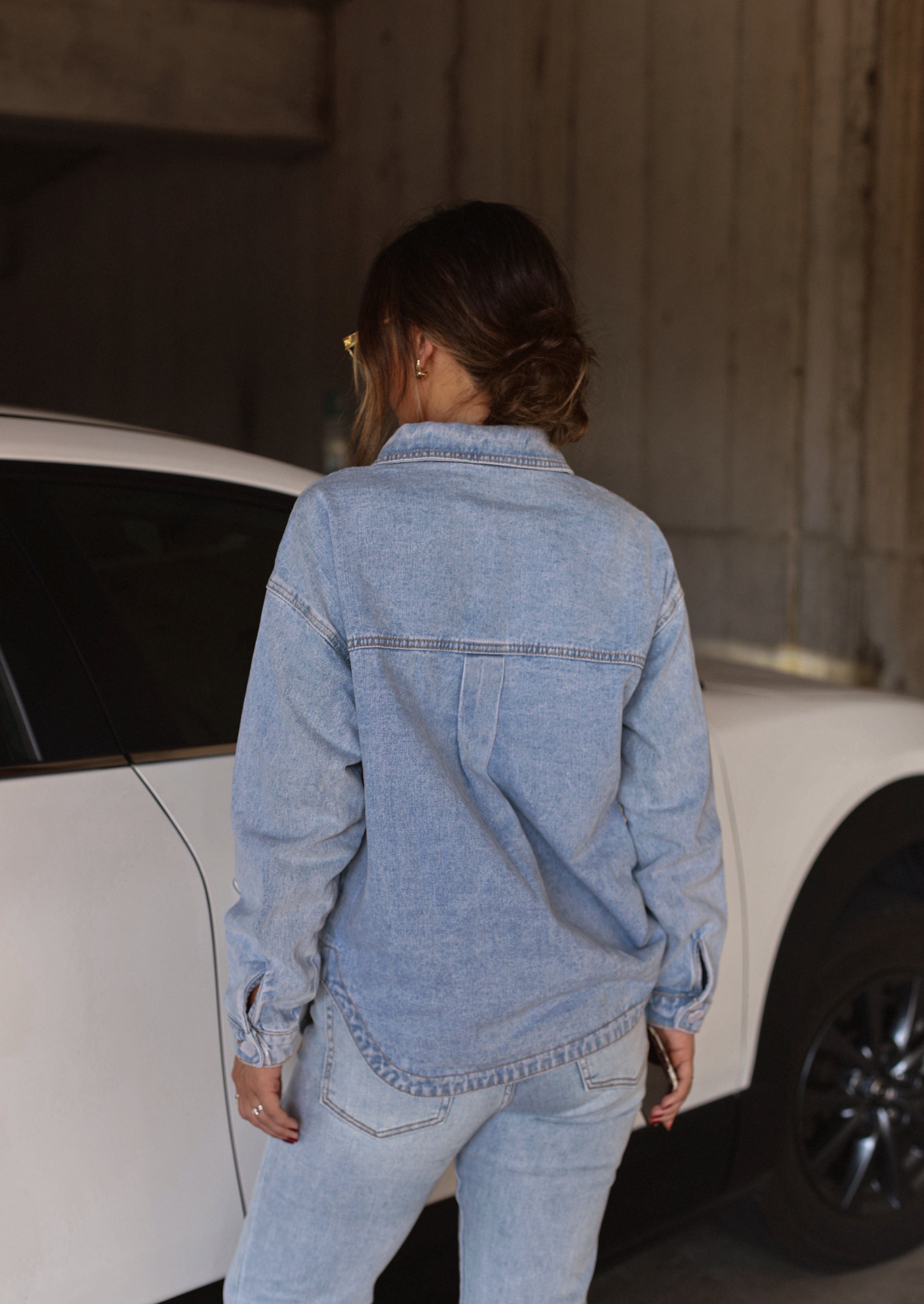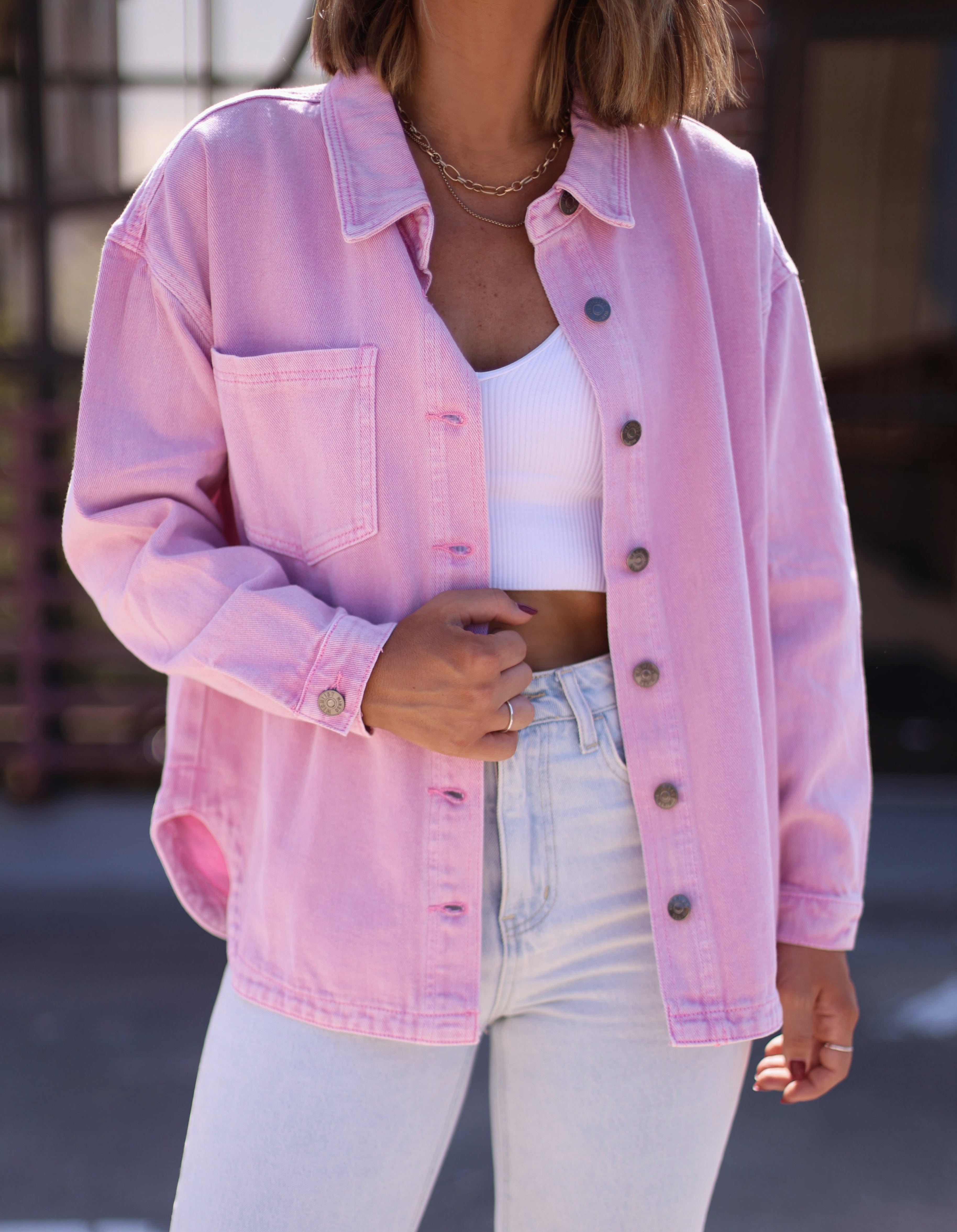 Explore quaint backstreets and rural locales in the Small Town Stroll Shacket. Subtle light-wash denim lends a timeless vintage look, while the collared neckline, button closures, and rounded hem create a classic silhouette. A relaxed fit and versatile styling make this a perfect, elevated layering piece as temperatures cool. Make this a staple of your fall wardrobe for a basic yet essential transition piece.
