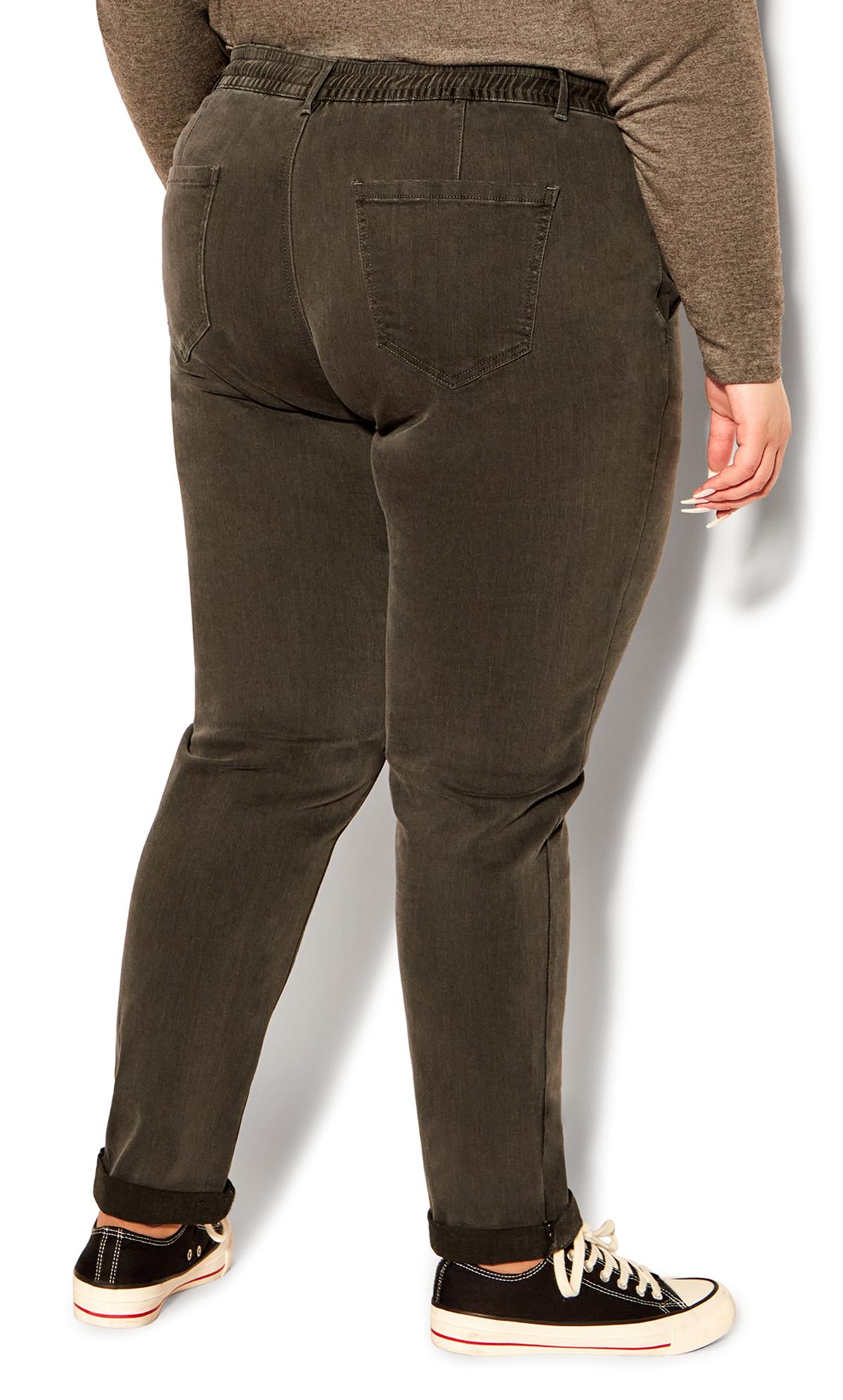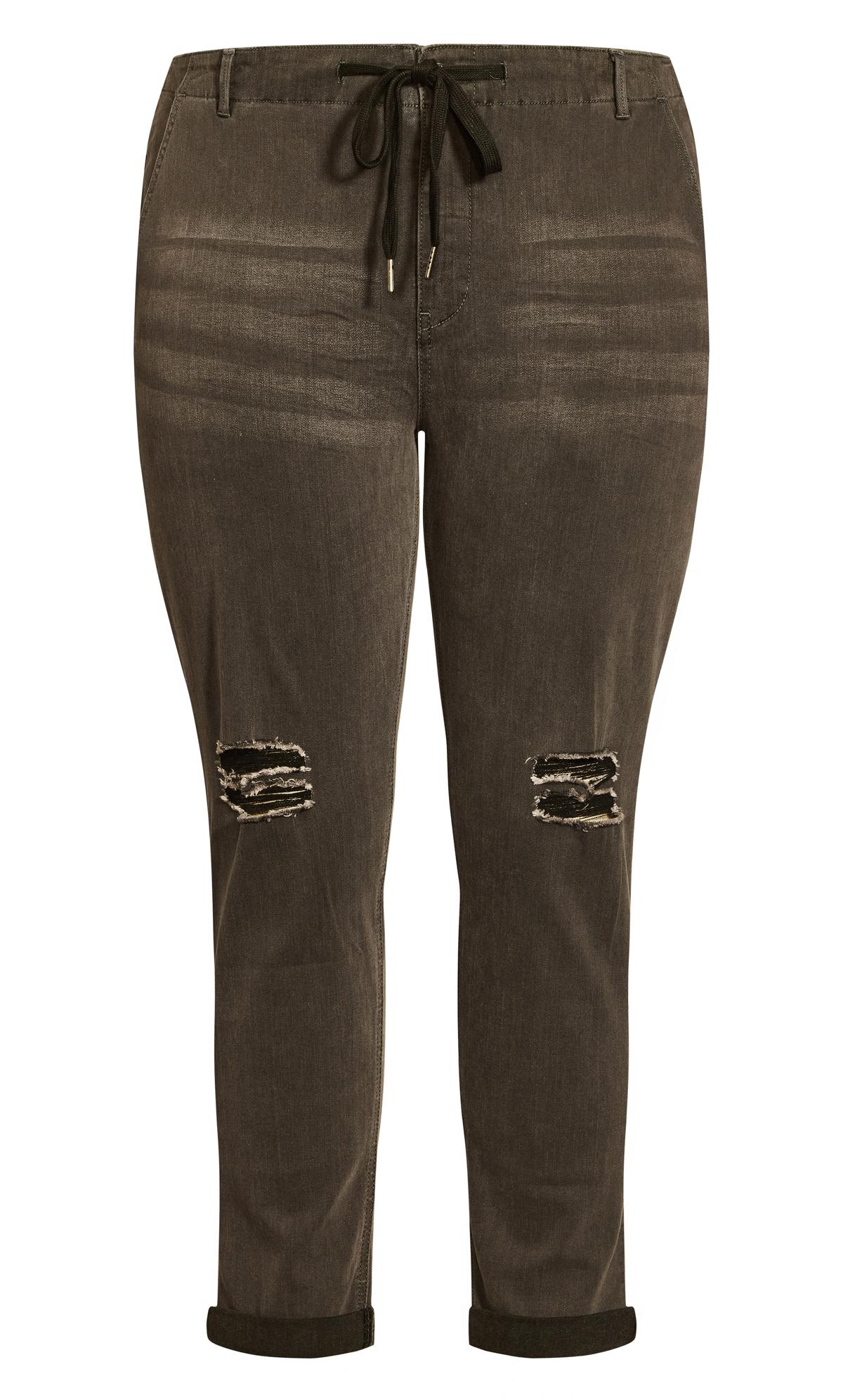 Discover effortless style with Avenue's Black Washed Distressed Drawstring Jeans. Crafted from premium denim, these jeans offer a rugged, edgy look. Elevate your casual wardrobe with Avenue's distressed drawstring jeans.