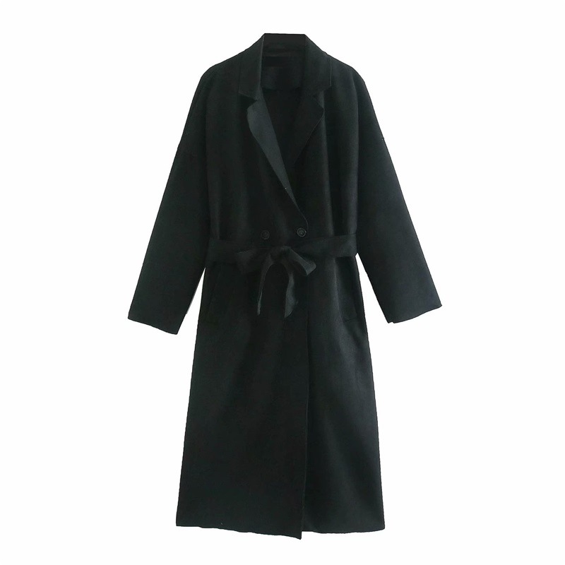 Solid Casual Front Tie Lapel Coat 169730