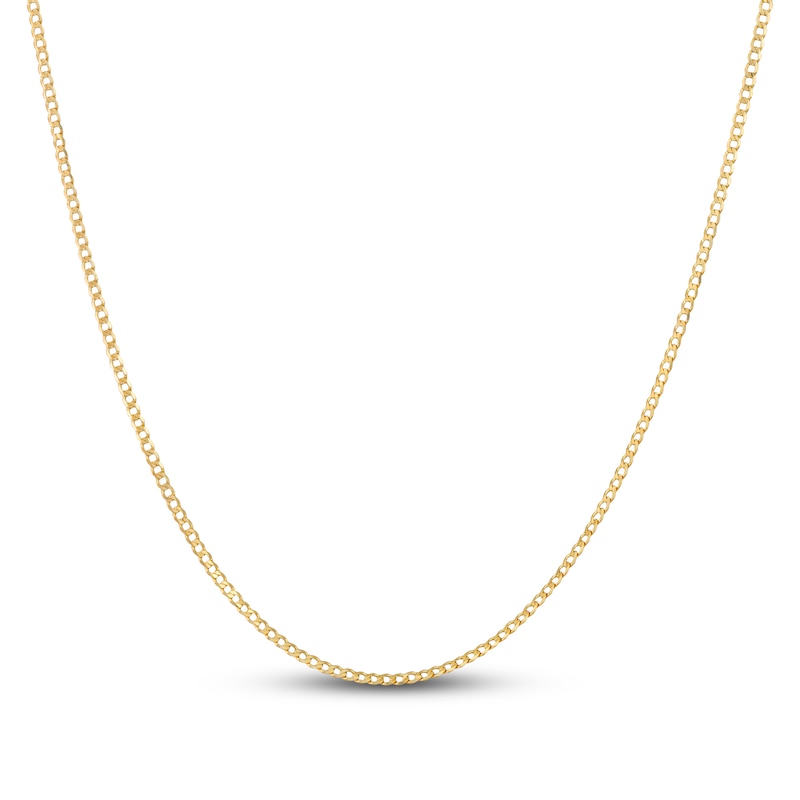 A timeless statement piece, this solid curb chain necklace is crafted in 14K yellow gold with a high polish finish. The Italian-made chain has a chain gauge of 050 and measures 2mm. The 18-inch chain secures with a lobster clasp.