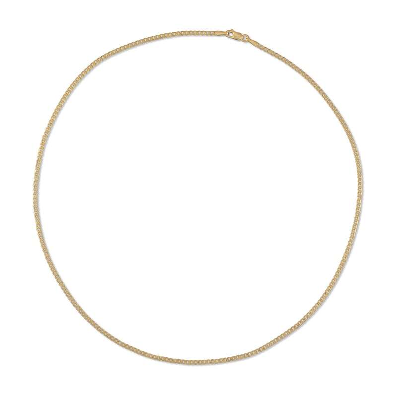 A timeless statement piece, this solid curb chain necklace is crafted in 14K yellow gold with a high polish finish. The Italian-made chain has a chain gauge of 050 and measures 2mm. The 18-inch chain secures with a lobster clasp.