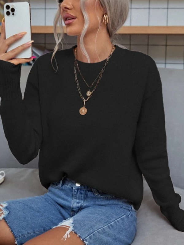 Solid Drop Shoulder Sweater