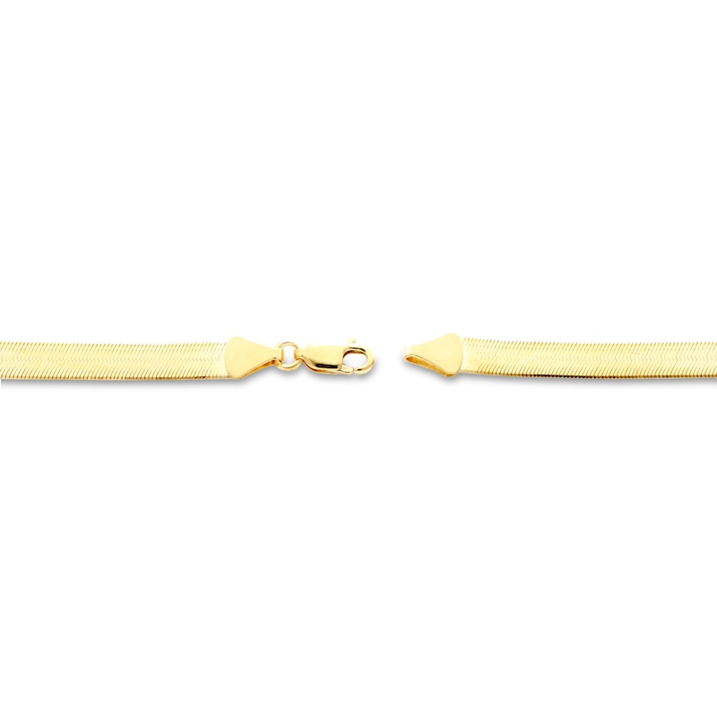 A perfect statement piece alone or with other gold chains, this Italian-made solid herringbone necklace shines in 10K yellow gold. The chain has a 035 gauge, measures 20 inches and secures with a lobster clasp.